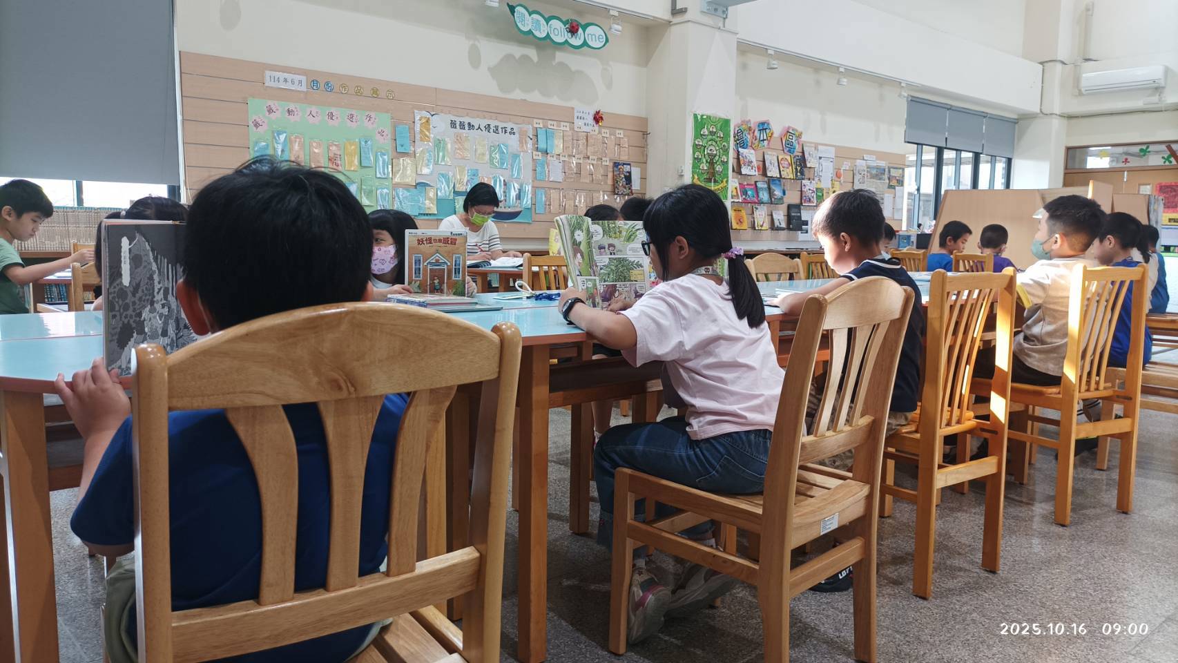 早晨的陽光柔和灑落在神奇書屋之中,二年孝班的小朋友們靜靜地坐在書桌前,打開一本本圖書,沉浸在繽紛的文字與圖畫世界中。從他們認真的神情、穩定的坐姿與細心翻閱的畫面中,可以看見學習的專注與成長的力量。