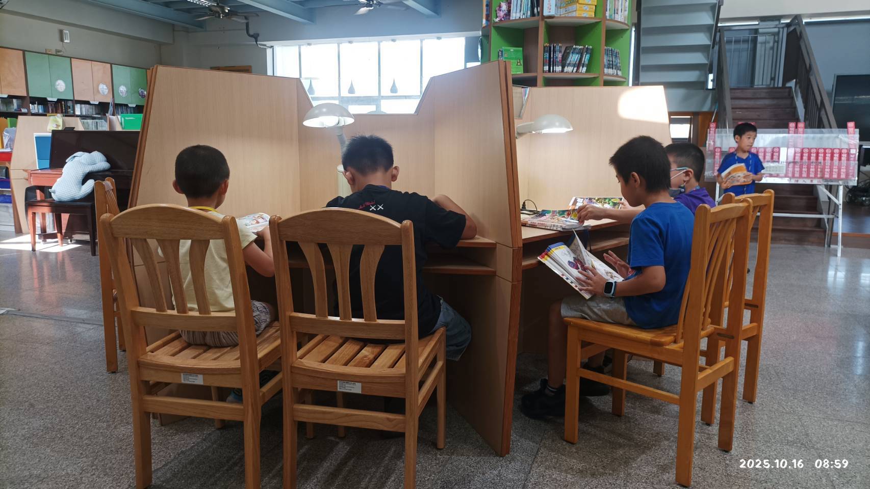 老師讚賞地表示:「可以從孝班小朋友的表現察覺:竹蓮國小小朋友們越來越懂得自我管理,每次進館都能自然進入閱讀狀態,就像一群成熟的小小學者。」這樣的閱讀習慣,培養了孩子的專注力與理解力,讓他們在文字的海洋裡找到屬於自己的想像,正如每當他們翻開書本,用心探索每一個故事時,可以從圖畫中發現世界的美好,更可以從文字裡學習思考與感受。雖然年紀尚小,卻展現出穩定、認真與自律的學習態度,讓老師們深感欣慰。