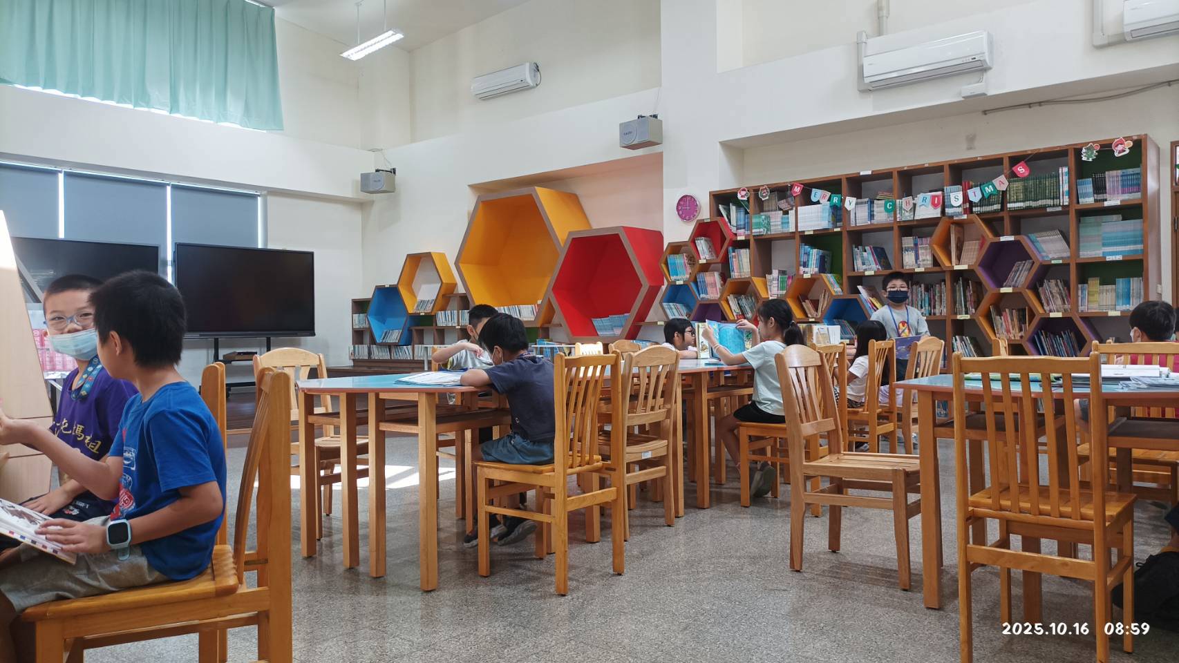 開學至今已經一個多月,孝班的孩子們在曾老師的引導下,不僅沒有因為十月連續假期影響而變得浮動—正因為竹蓮孩子們已經養成良好的閱讀習慣與學習態度。書屋中,無論是坐在閱讀桌前、獨立閱讀區,或與同學之間分享書本中有趣的圖案,他們都能安靜、守秩序地進行。這份穩定與專注,呈現出他們在學期持續明顯進步,也讓書屋的氣氛充滿了溫馨與書香。
