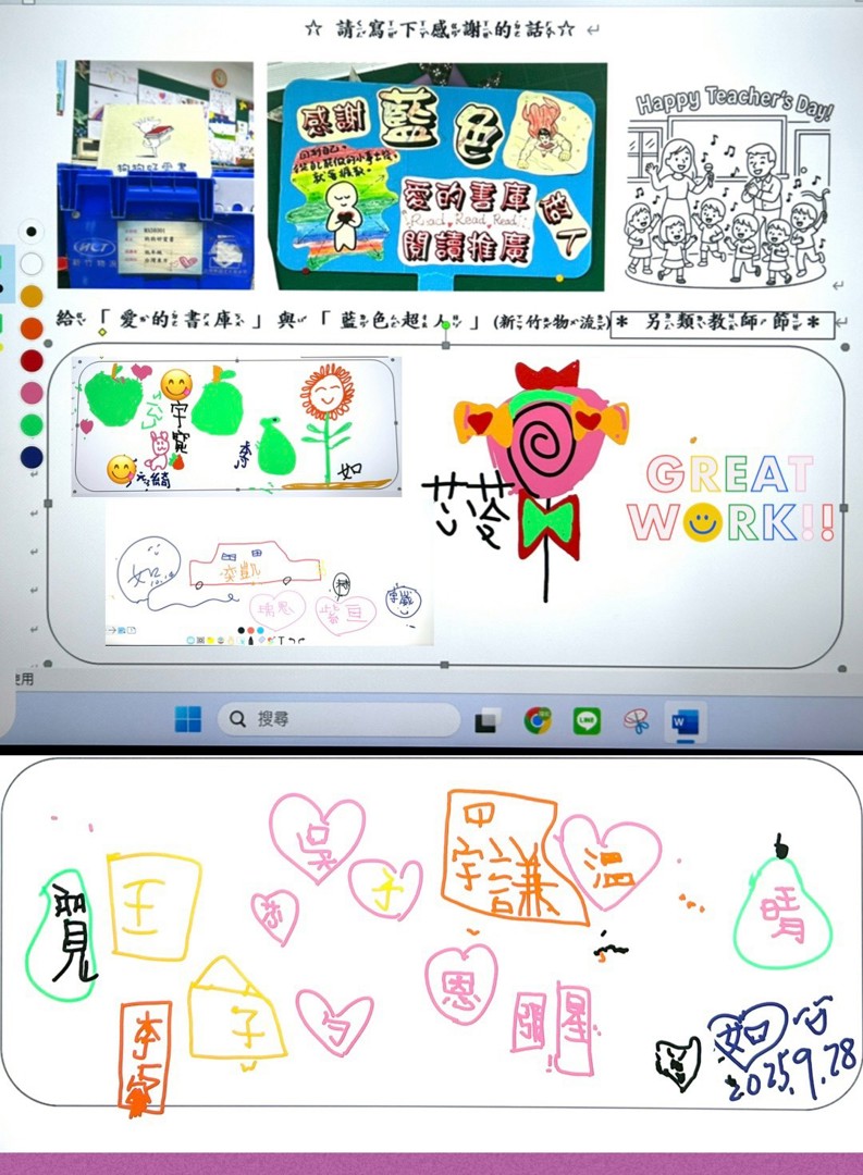 為了製作這張6頁動態卡片(Canva),師生們使出洪荒之力,工作尾聲非常歡樂,正式結束教師節感恩系列。