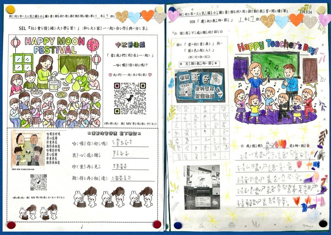 (1)個人書寫教師節、中秋節秋季食農、愛的書庫閱讀單與佈置展覽