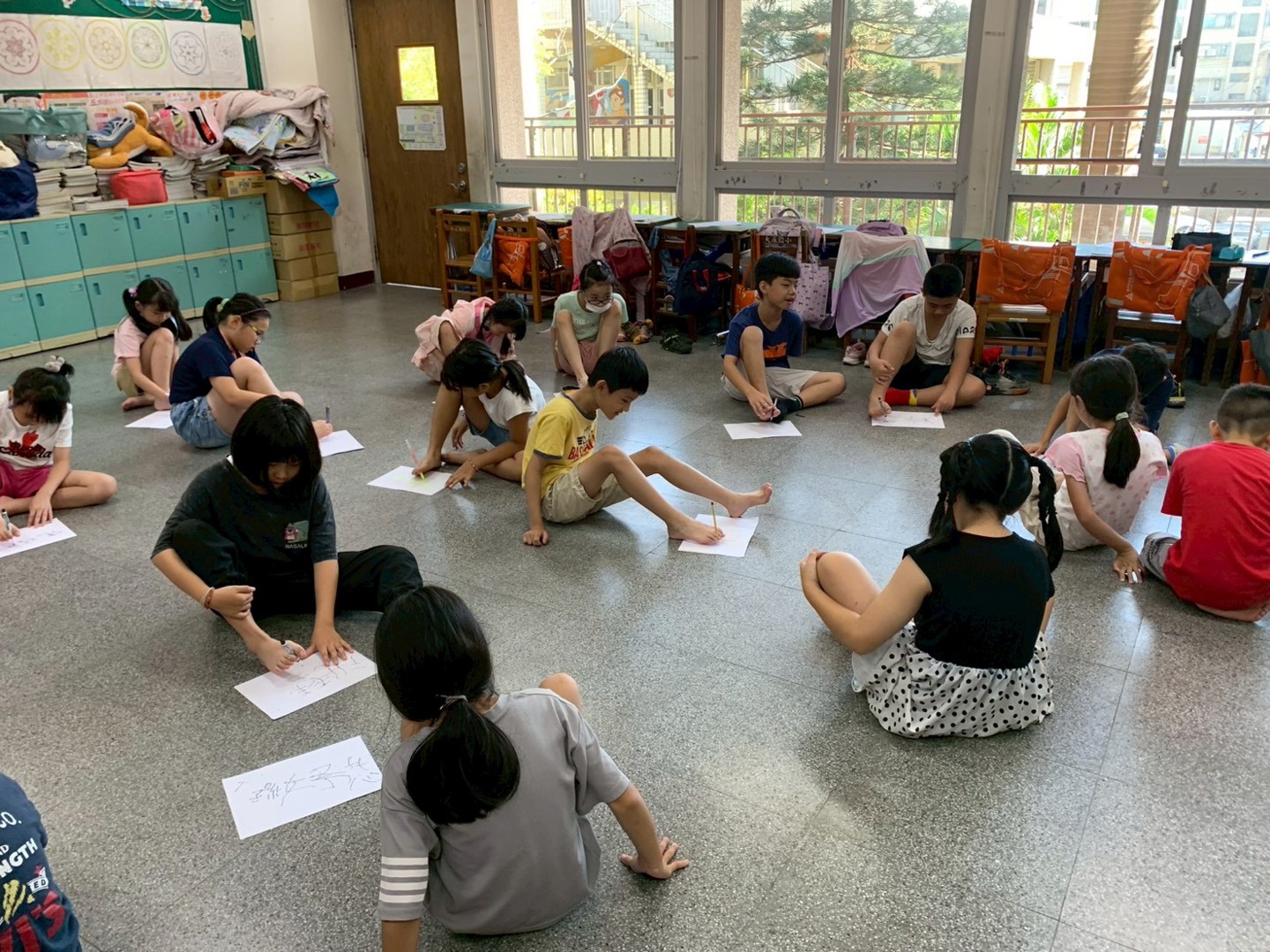 三、四年級學生則著重於肢體障礙的體驗,嘗試僅用單手或口完成日常瑣事。三年級學生體驗單手擰抹布,直言「很難」,並發覺「如果沒有右手協助要費很大的力氣才能完成平常很簡單的動作。」四年級學生則在用口咬筆寫字的過程中,體會到其中的艱辛與不便,驚嘆道:「我今天用嘴巴咬筆寫字時一直流口水,寫出來的字也很醜...所以我覺得口足畫家真的很厲害!」