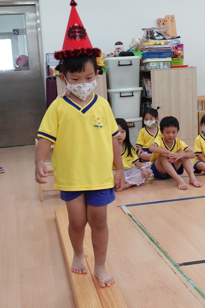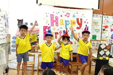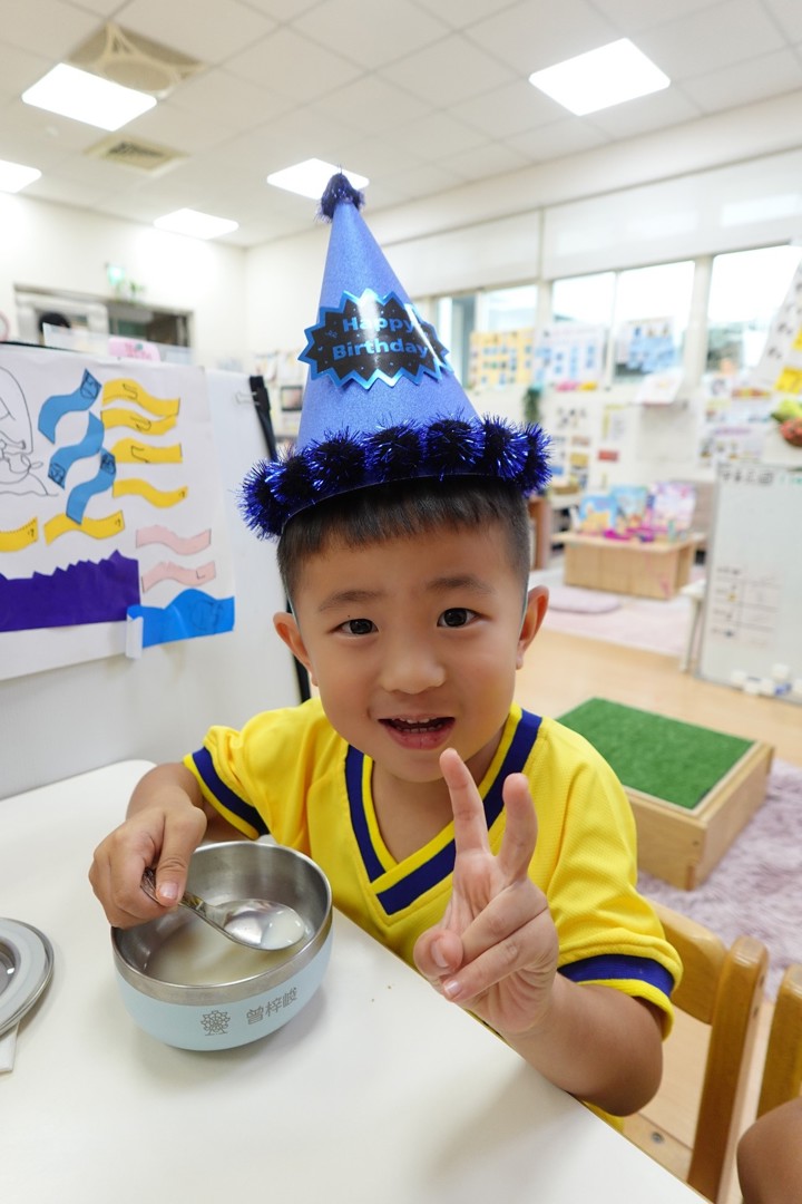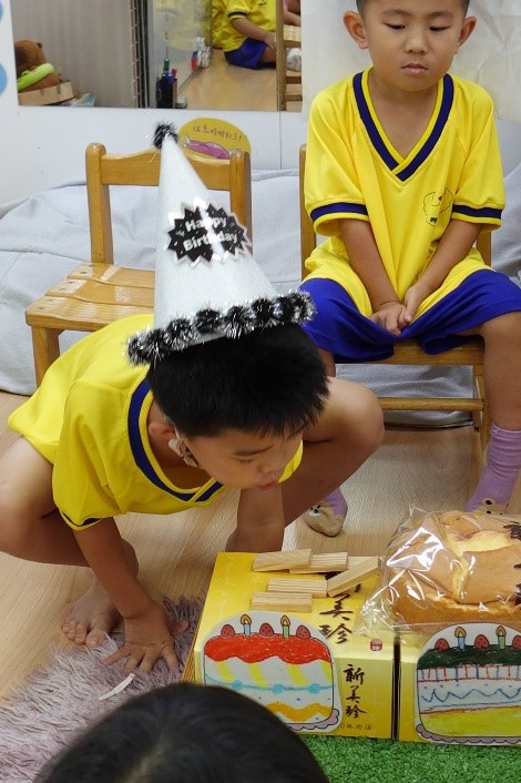 在9/26慶生會這天,小壽星於體能時間擔任示範小老師,以正確的運動姿勢闖關,帶領大家充分運動,強健體能,中午才能好好休息以迎接下午更精采的慶祝會。午休過後,小壽星再以可愛的舞姿喚醒大家,以快樂氛圍邀請大家來參加慶生會,小壽星說出自己的心願,並以吹木片蠟燭的方式象徵心願會在未來成真,在同學們的生日快樂歌曲慶祝下,祝福8.9月份的小壽星生日快樂!最後,大家一起品嚐美味的蛋糕,恭喜你們又長大一歲囉!