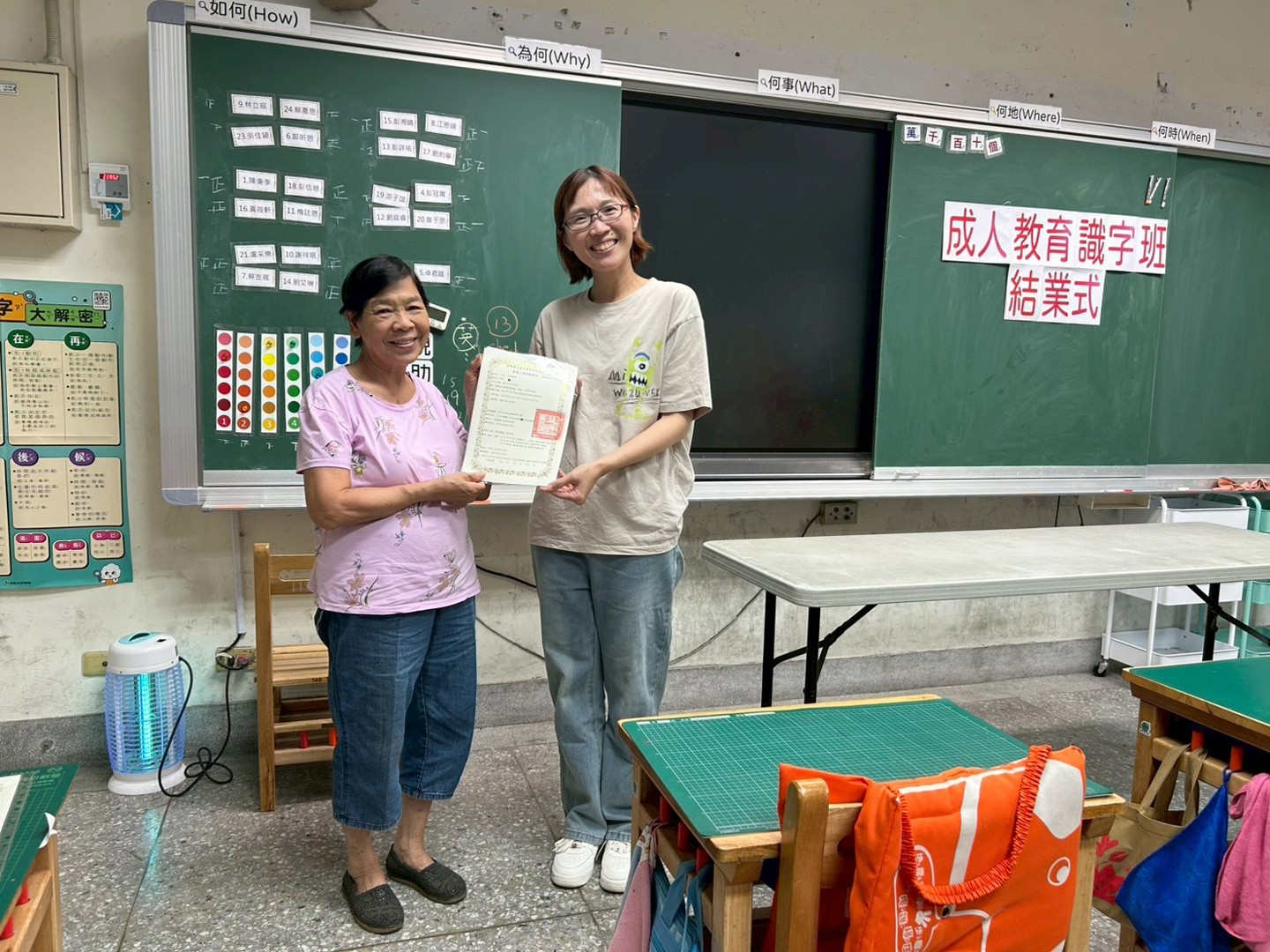 感謝麗娥校長親臨現場同歡,也謝謝敬嵐主任到場一一為學員頒發結業證書,更感謝瑜君組長長期承辦成人教育業務,為學員們打造溫馨而又堅實的學習堡壘。
