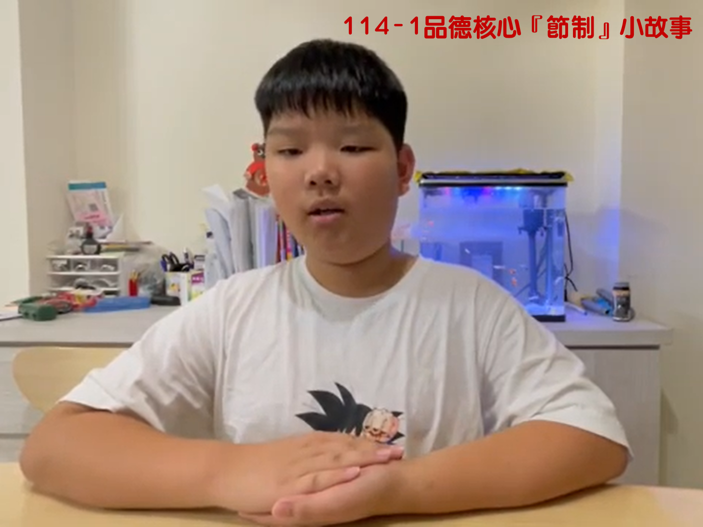 以下為114學年度十一月份的品德核心「節制」,由學生自治市幹部杜同學進行故事的講演。以下為同學自行準備的精采內容: