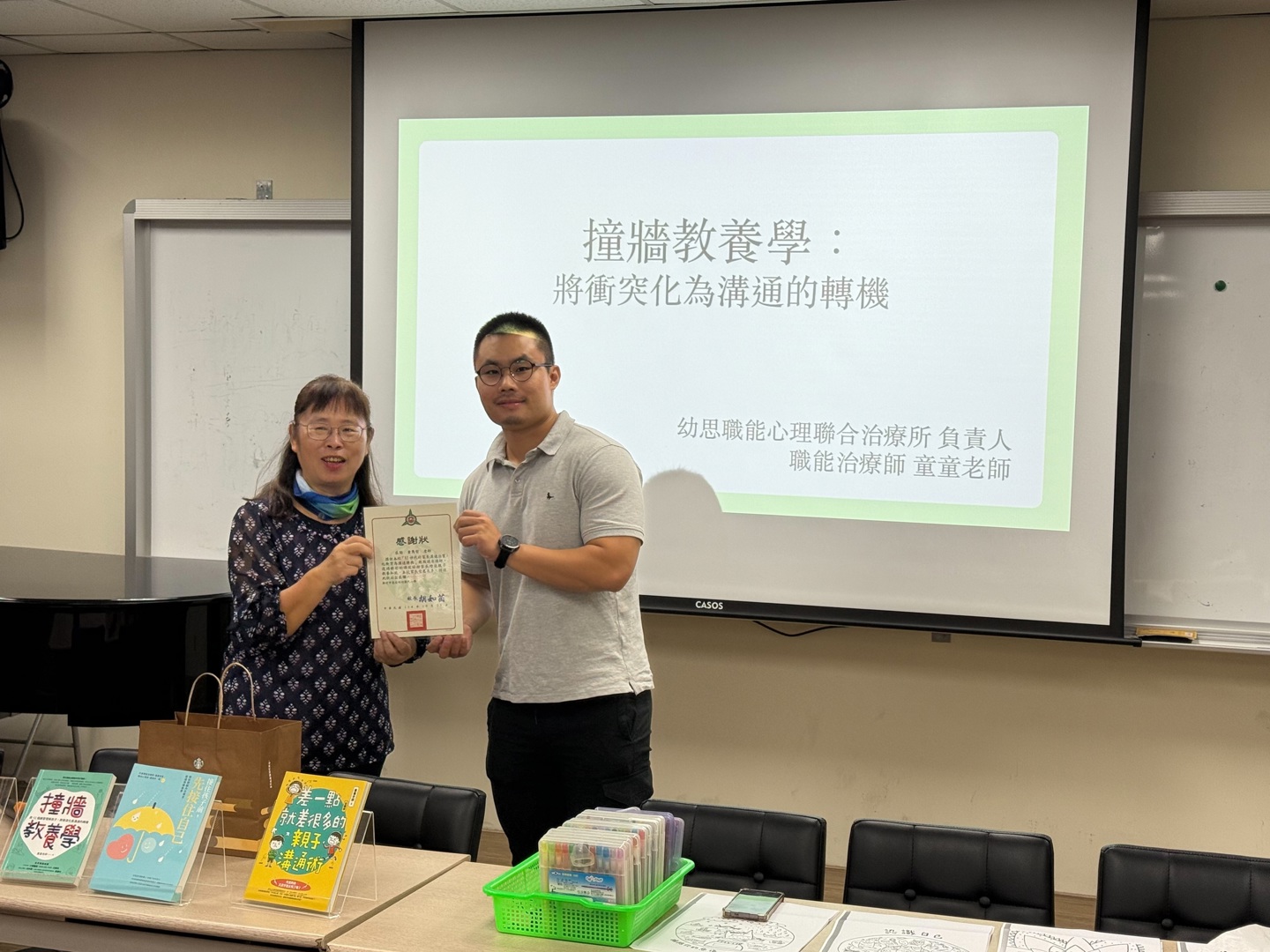 新竹國小於10月31日,小周末的晚上邀請職能治療師童雋哲老師(童童老師)與我們分享AI世代下親子教養的溝通法寶,童童老師一開始邀請家長分享親子教養的困擾,指出當我們只著眼於孩子的「行為」表現(例如:吼叫、逃避、打人、拖延),而忽略背後的「情緒」「需求」「動機」,親子關係容易卡住或進入所謂的「撞牆期」。今日希望可以幫助家長打破惡性循環,從事前的規則建立、善用親子依附、提供行為價值,進而討論解決問題的方法,透過一系列教養架構,降低反覆摩擦、增進親子間理解與合作,而講座中,童童老師更以「書寫功課」以及「手機使用管理」兩個常間的親子衝突為案例,進行引導討論與練習,在期中考前夕,更希望可以幫助家長們在親子教養上更為得心應手。