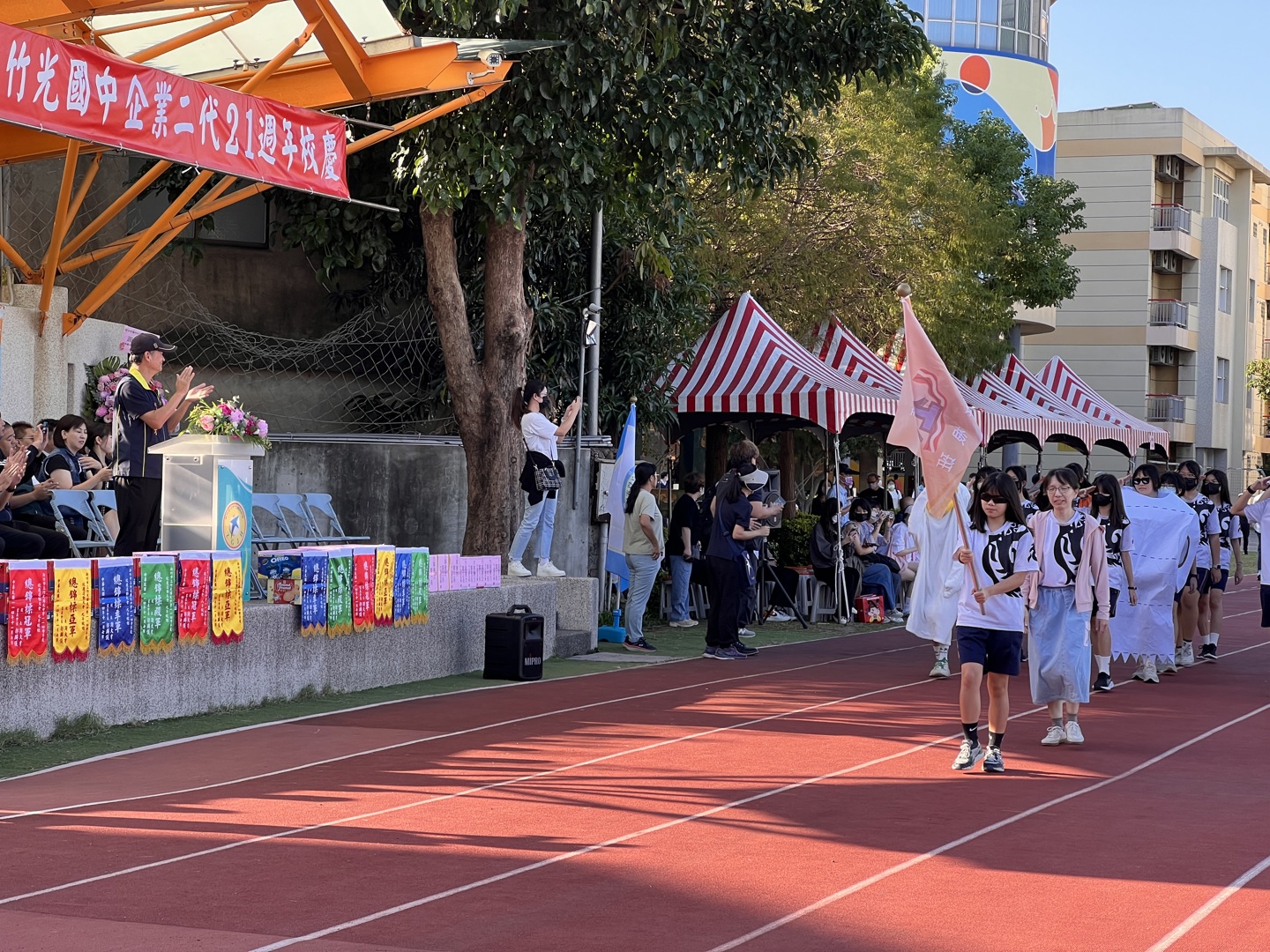 本次校慶活動內容豐富多元,表演更是活動的一大亮點,展現學生們平日訓練的成果與運動家精神。家長會在會長郭麟儀的號召下,全力支持校慶各項活動的進行,從場地布置到活動規劃,都可見到家長們無私奉獻的身影。這種親師生緊密合作的模式,正是竹光國中能夠持續進步的重要動力來源。