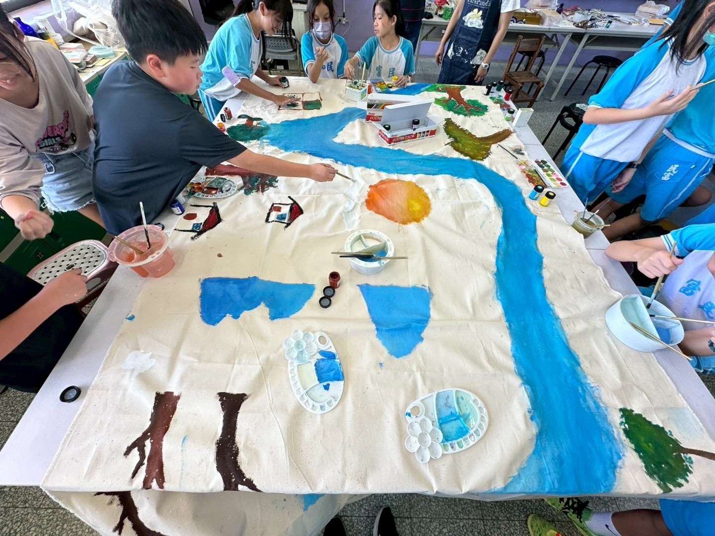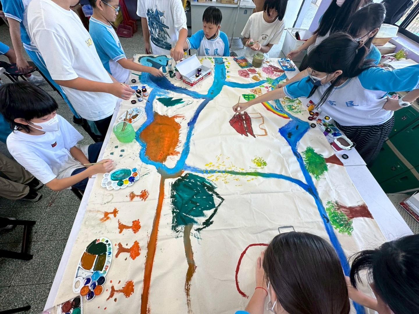 最後,孩子們以畫筆呈現所見所思,創作出一幅幅充滿想像與情感的「民富水文地圖」。這些作品不僅展現他們對家鄉的熱愛,更是獻給民富110週年最獨特、最真摯的祝福。