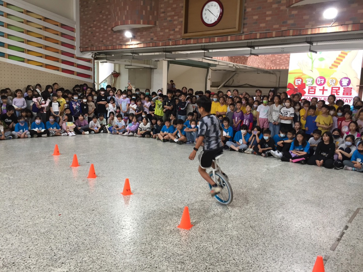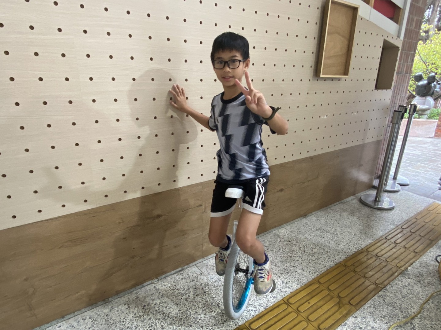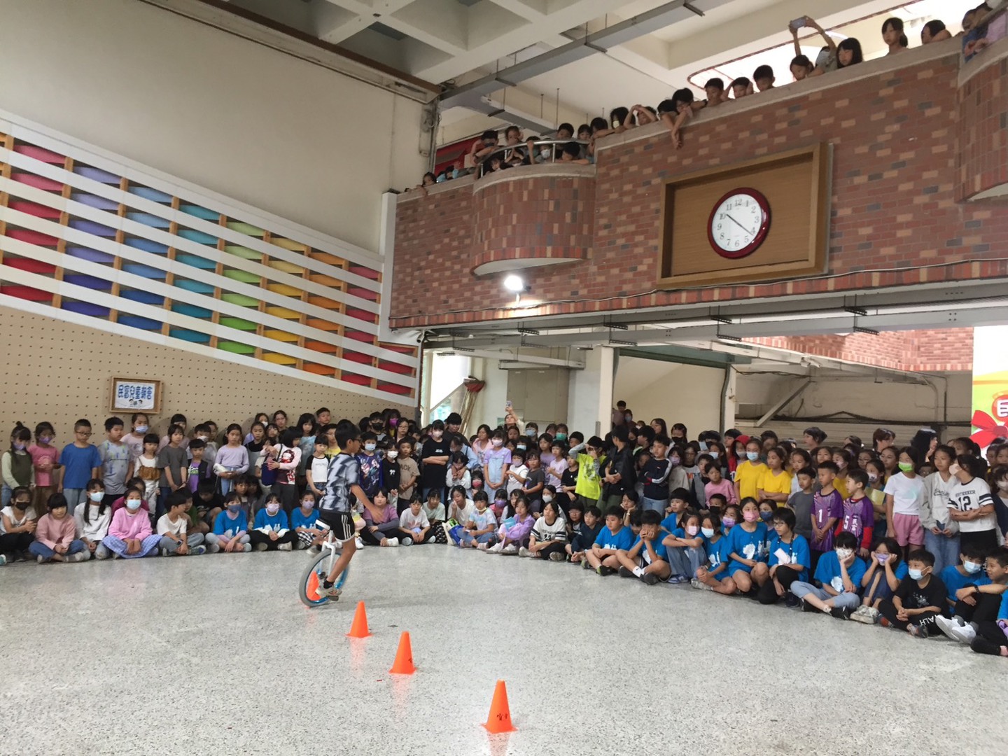 緊接著登場的是來自五年三班的李艾栩同學,他將挑戰許多人望而卻步的特技表演——獨輪車!艾栩展現出的勇氣與穩定度絕對令人讚嘆,透過一連串精彩的獨輪車動作,結合節奏、平衡與創意,為大家帶來一場驚喜連連的視覺饗宴。每一個轉彎、每一次平穩的滑行,都是他努力練習的成果。請大家給予最熱烈的掌聲,一起欣賞這段勇氣與堅持交織而成的精彩演出!