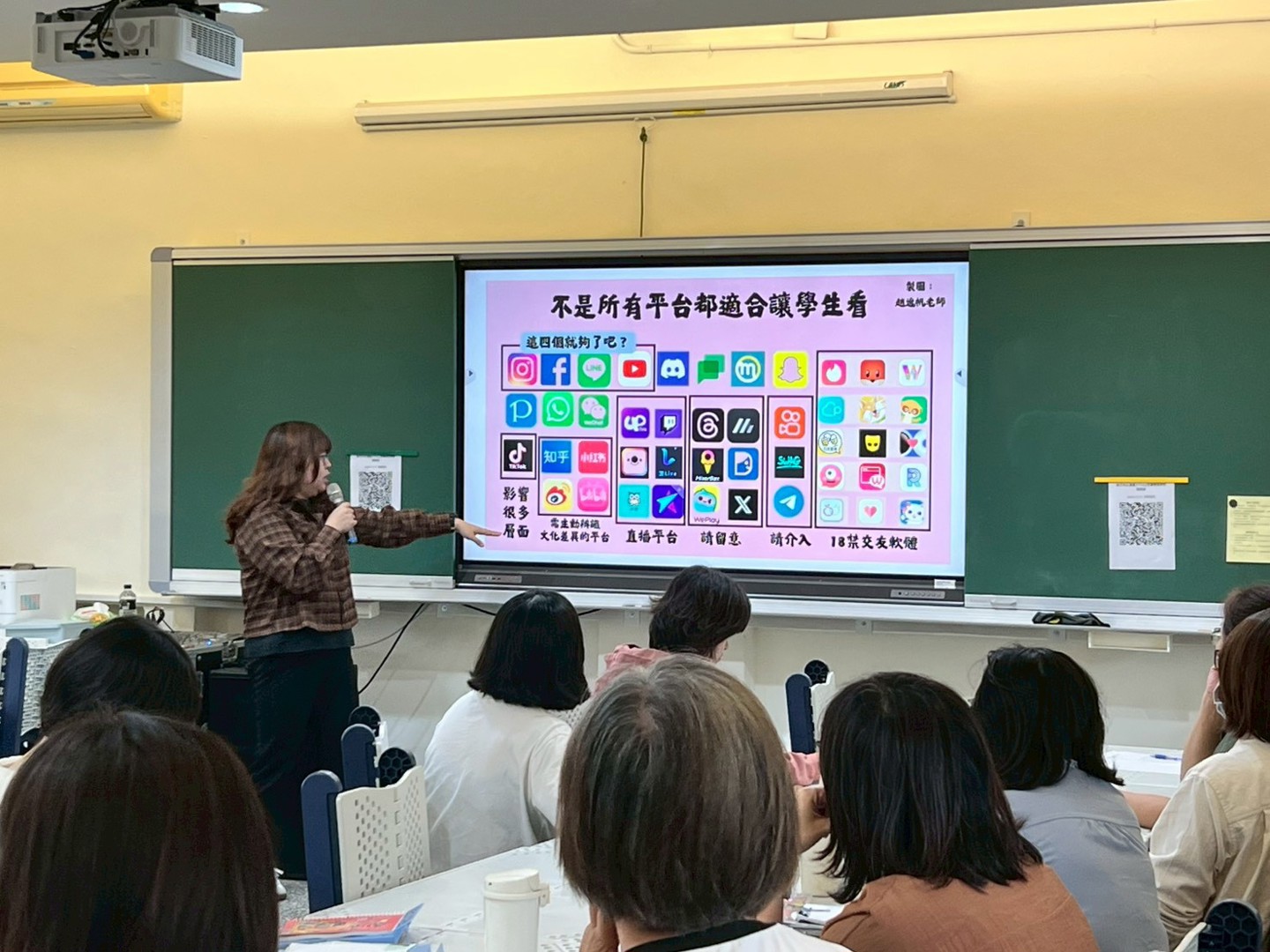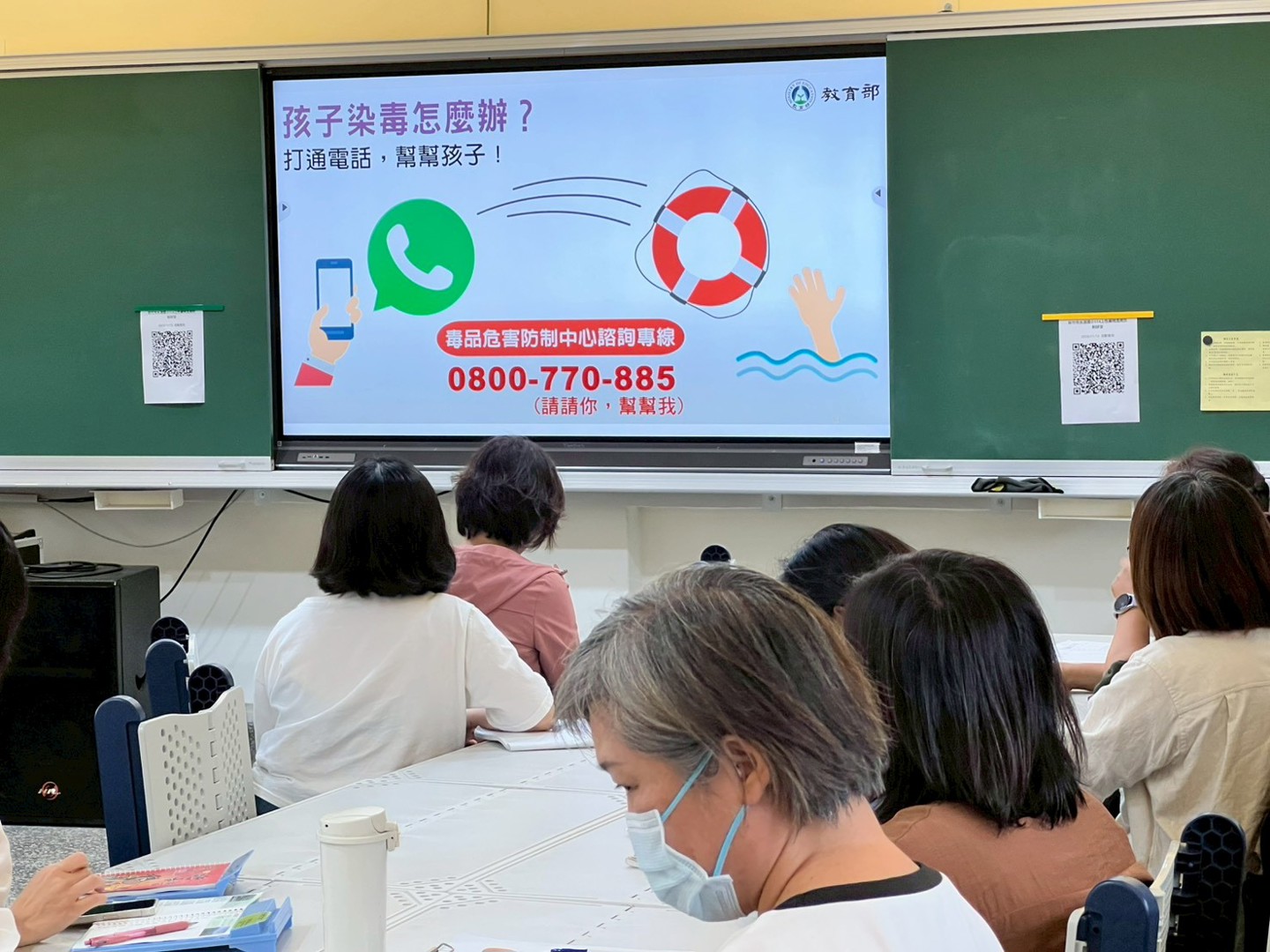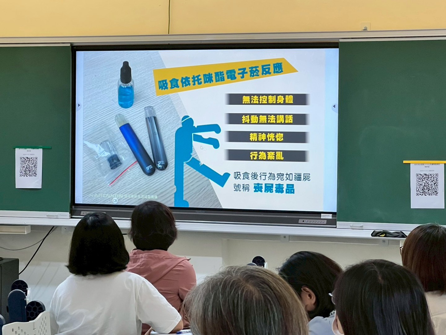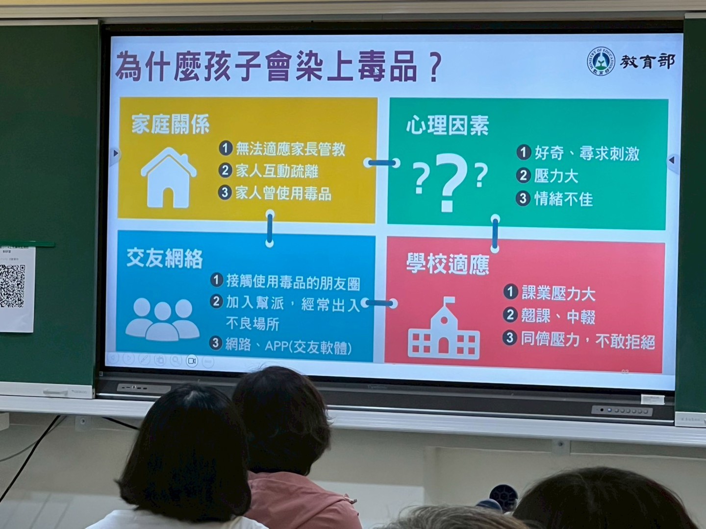 講師從從網路陷阱及網路犯罪等性平等兒少保概念切入,到認識青少年常見的毒品種類與新興偽裝手法,了解孩子可能接觸藥物的心理與社會原因,學會辨識藥物濫用的早期警訊與回應策略等來引導老師及家長。希望能透過此研習共同建立家庭與學校的防毒守門人網絡。
