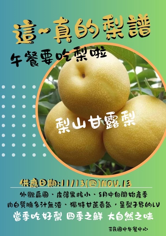 *甘露梨-來自高海拔1700公尺的梨山甘露梨,肉質白脆多汁無渣有獨特甘蔗香,營養豐富熱量低,促進腸道健康也止咳化痰,真是正值盛產吃好梨