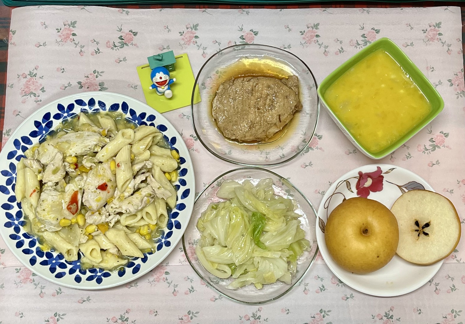 今天的午餐有白醬雞肉筆管麵、十三香滷豬排、有機高麗菜、南瓜濃湯、梨山甘露梨,美味優質又安心,含金量超高,到底有多高,趕緊來了解: