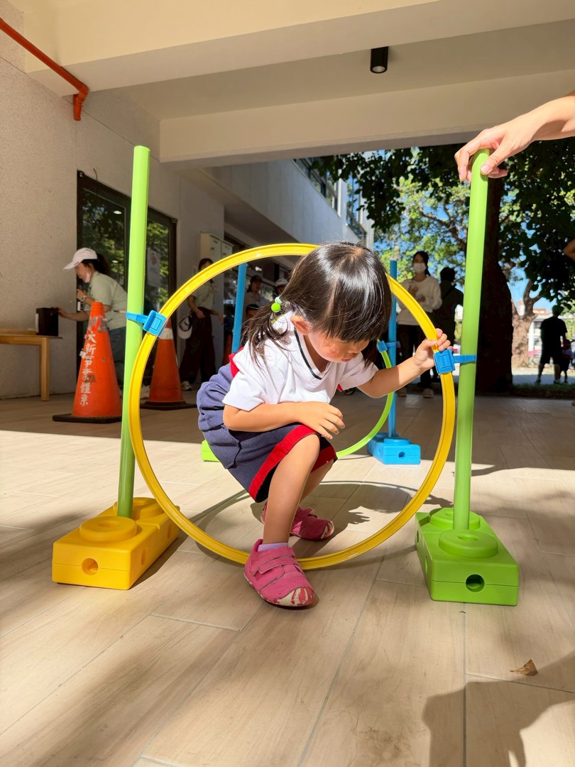 新竹國小128校慶,幼兒園小勇士秘境大冒險系列闖關活動-其中勇士冒險王以萬象體能積木讓幼兒們透過穿越山洞、走過叢林平衡橋、拿取沙包投擲進行體能闖關,鼓勵幼兒勇氣探索精神,以恭喜小勇士們成功過關。