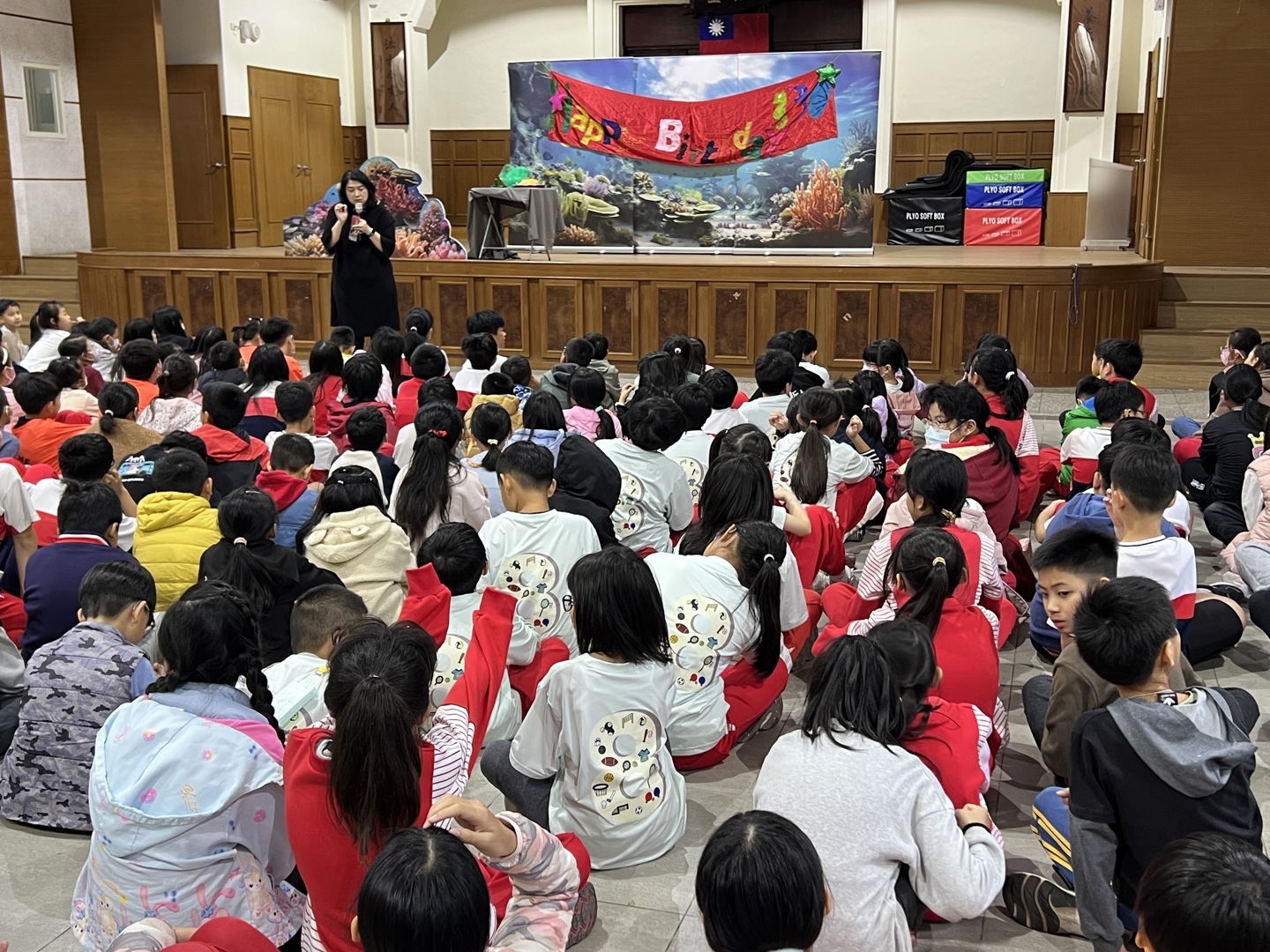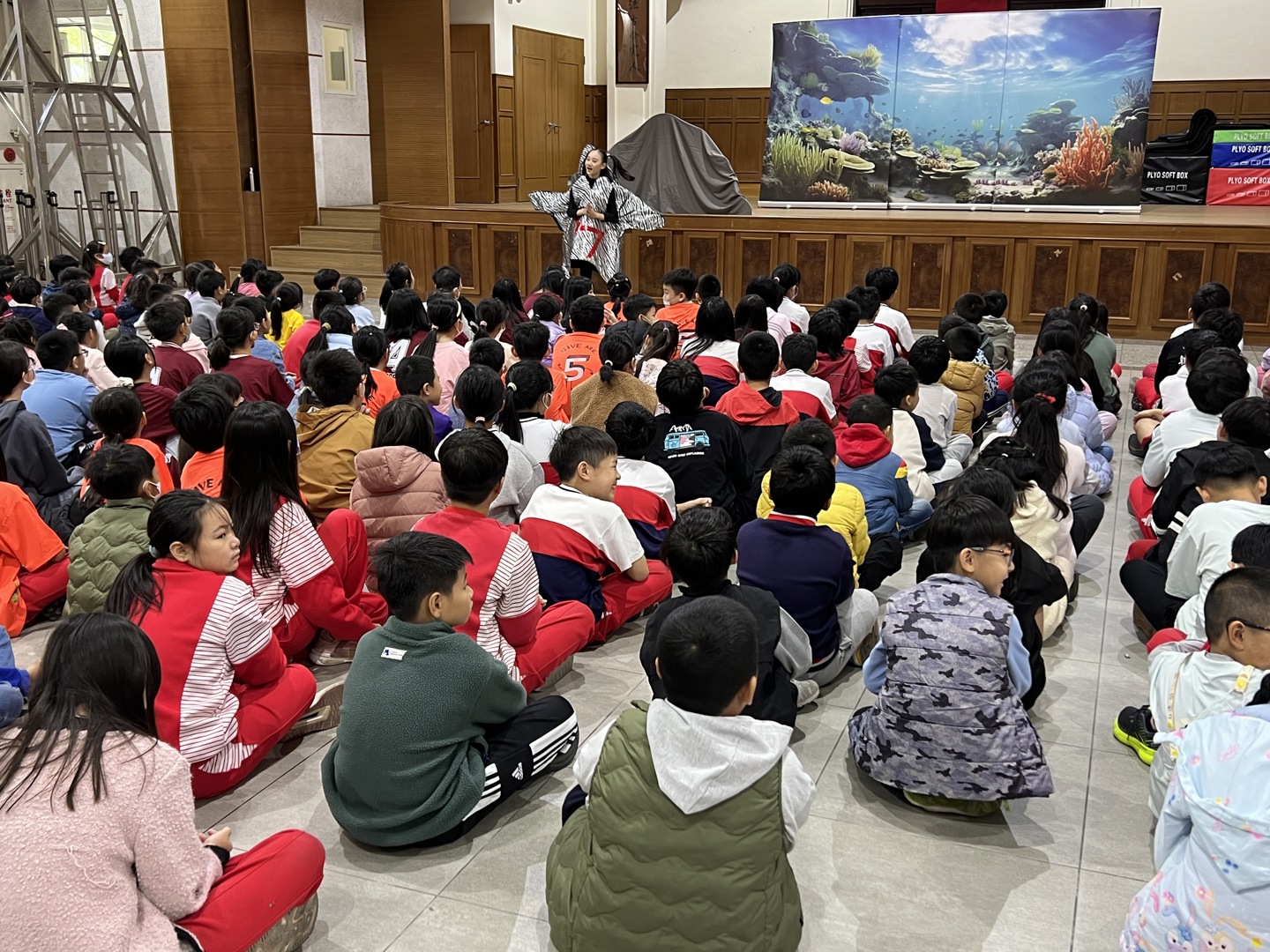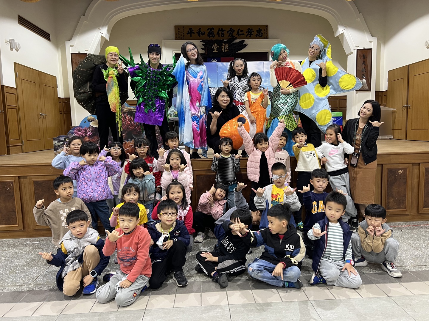 今天是小太陽劇團一年一度蒞校演出的日子,一整個早上,禮堂都充滿著孩子的笑聲、驚呼聲。故事從一隻海星的角度出發,呼籲海洋資源保育的重要。感謝小太陽劇團精心設計的情境劇,不僅有精美的服道化,更結合環保議題、海洋議題,孩子們看的目不轉睛,完全投入。