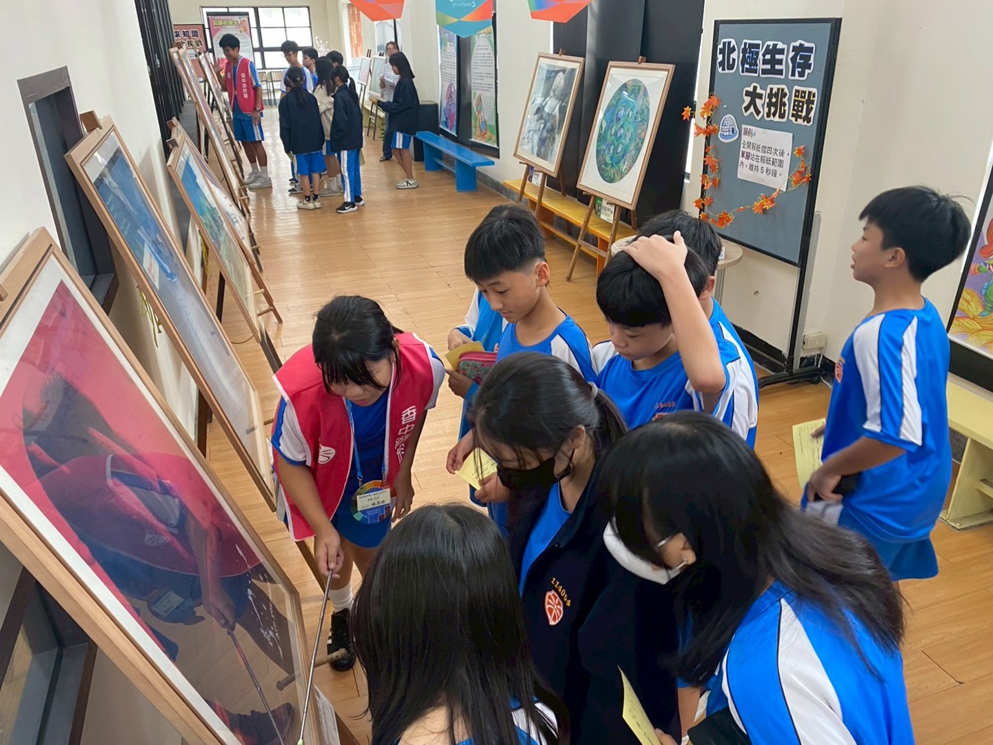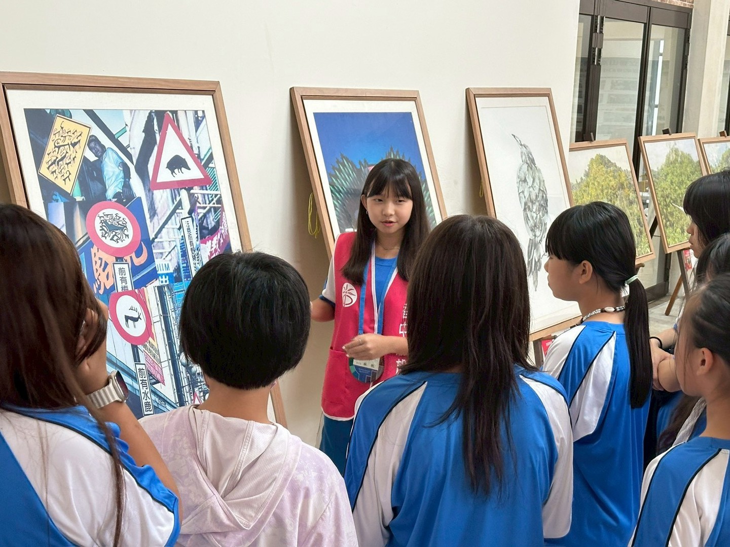 為了讓藝術體驗更貼近學習,學校特別安排國七班級在《品閱生活》課時段、高一班級於午休時間分批參觀。展覽導覽由國八及高二的學長姐擔任,他們以親切又專業的解說,帶領學弟妹從作品中看見「未來」的想像與環境議題的反思。