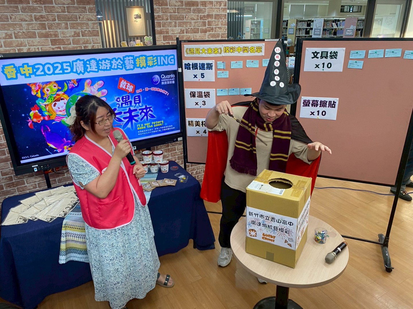 完成闖關的同學可獲得摸彩券一張,在10/31(五)放學時,由秘書及教務處活潑的同仁們現場抽出幸運得主,為特展活動畫下熱鬧又充滿期待的句點。