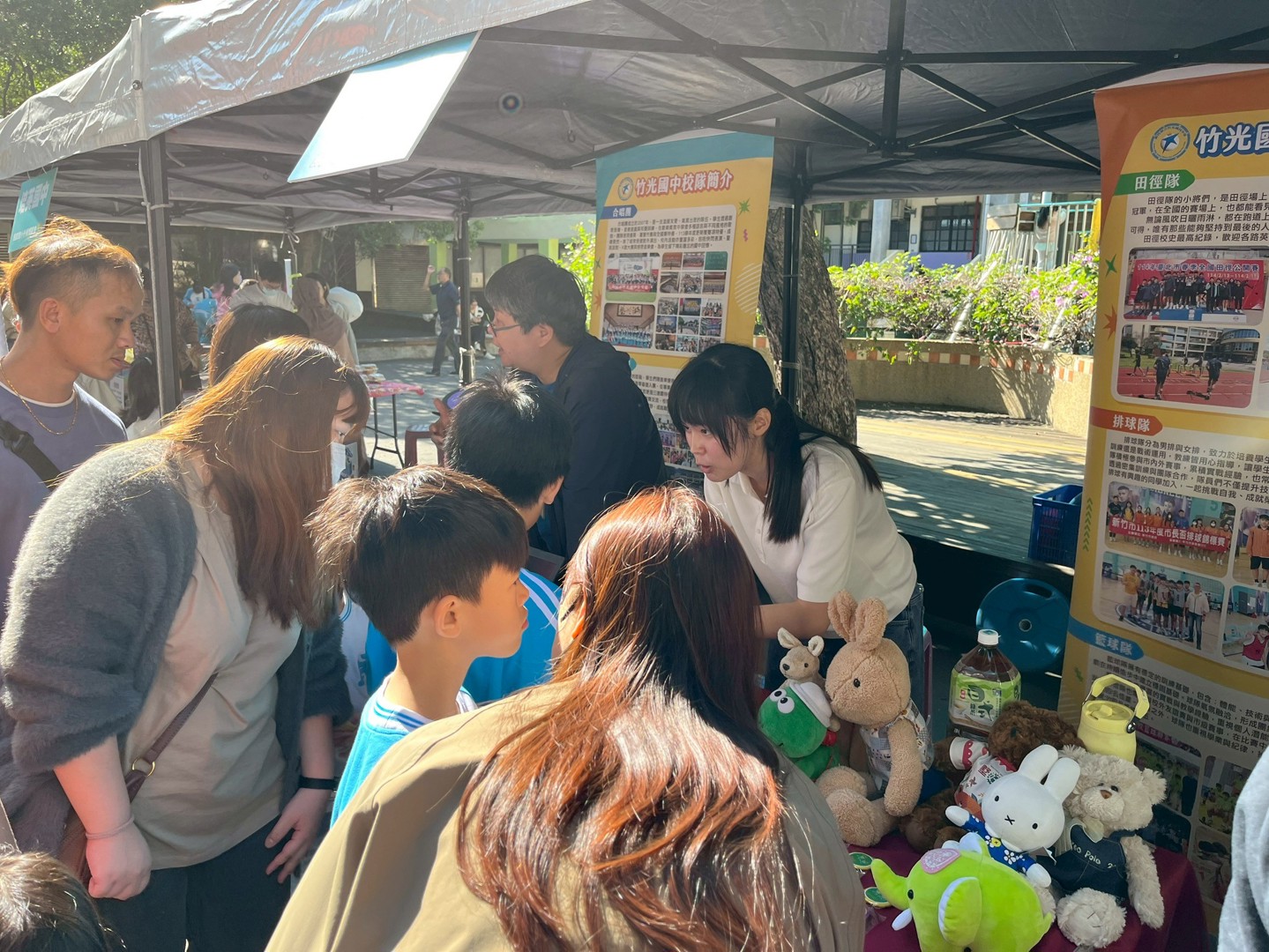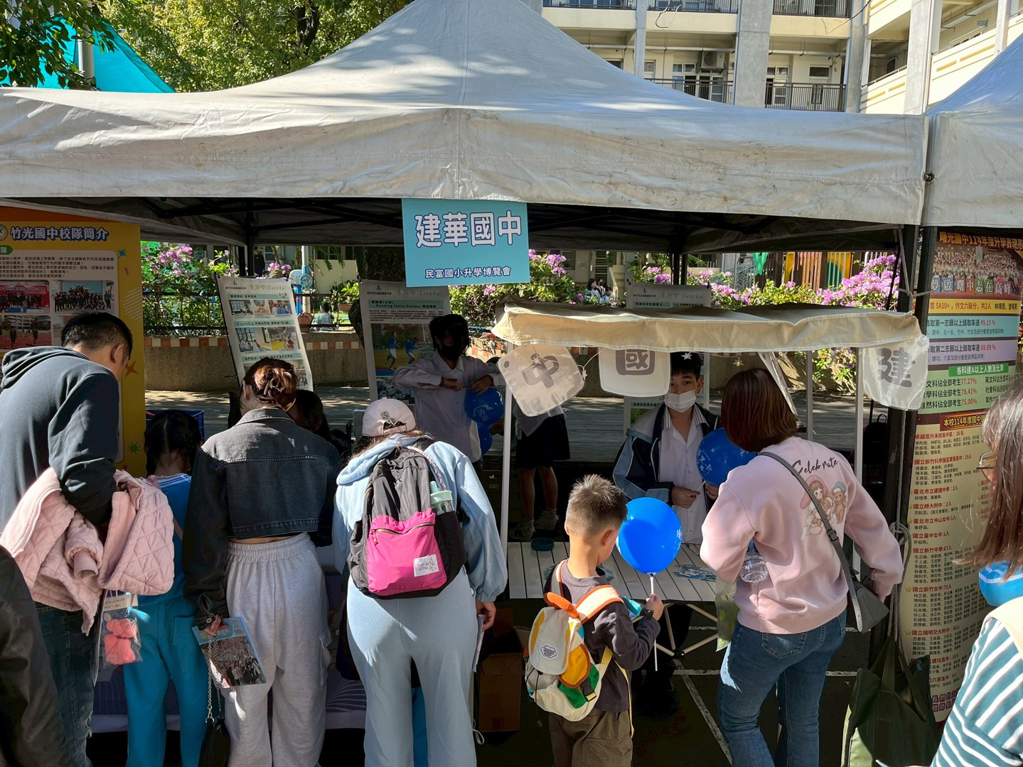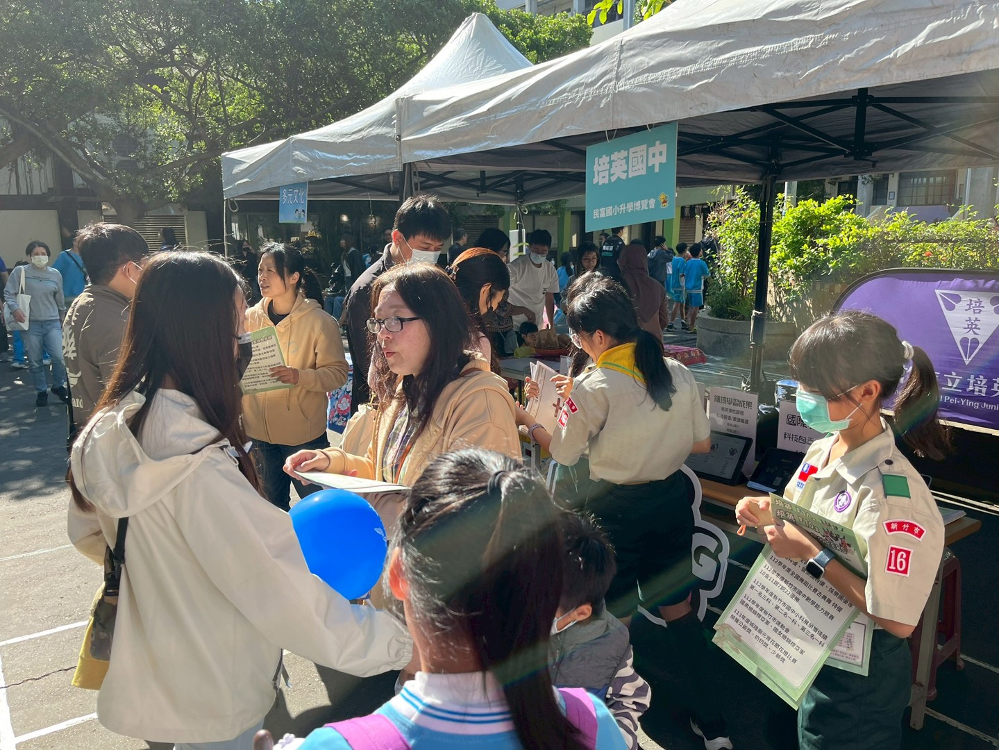 11月22日是本校110週年校慶園遊會,依照往例,輔導處邀請新竹市各公私立國中蒞校進行升學宣導,提供學生各國中端介紹或升學進路資料及諮詢,增進本校師生與家長對各國中端學校之認識與了解,協助學生進行生涯探索,進而選擇適合自己能力與興趣的學校或類班。今日天氣非常好,各個學校攤位前都擠滿學生與家長,大家都非常踴躍詢問與了解各校辦學特色,各校也卯足全力吸引學生與家長參觀與諮詢,今天的活動非常成功,希望對本校師生與家長有所幫助。