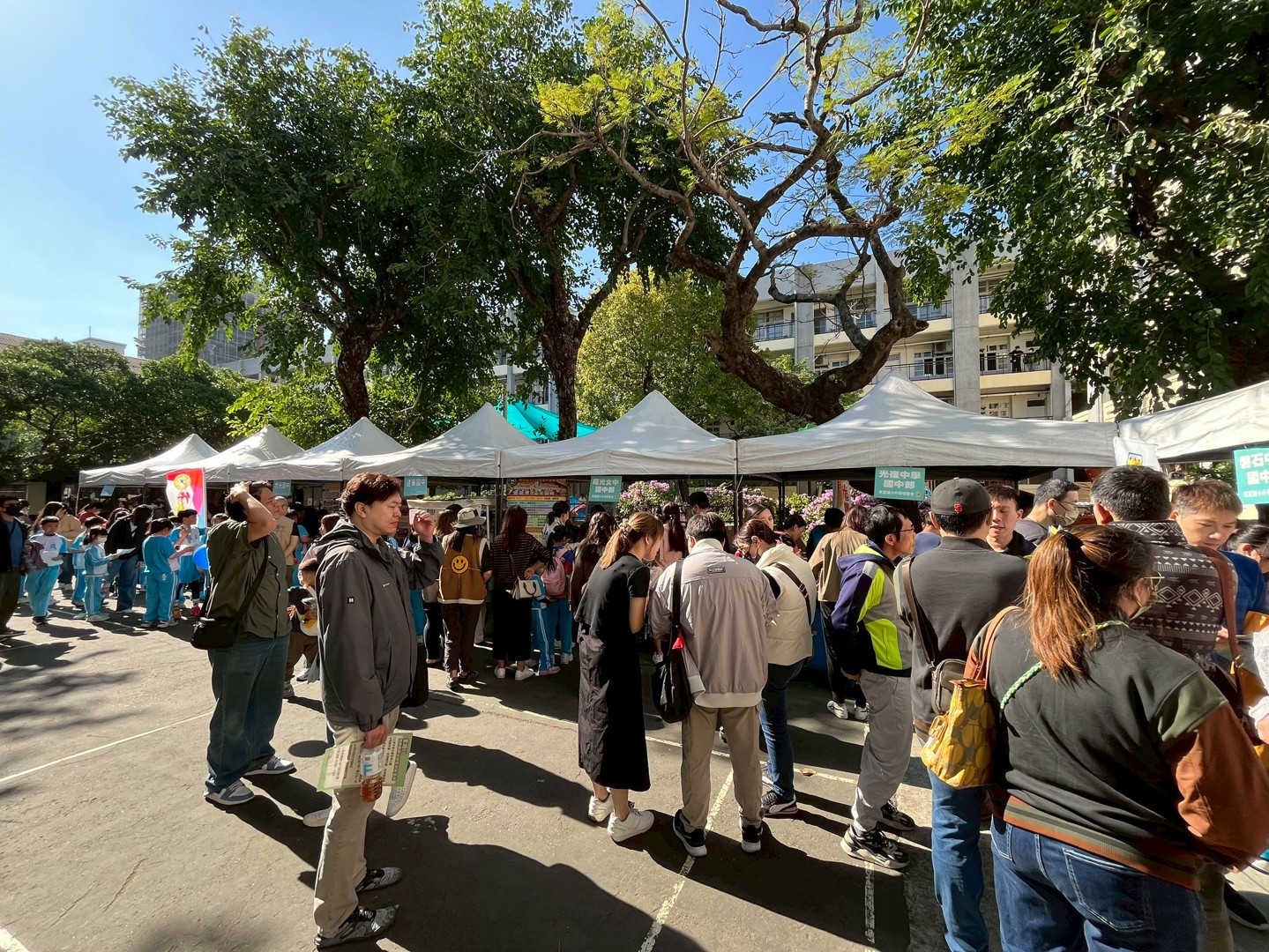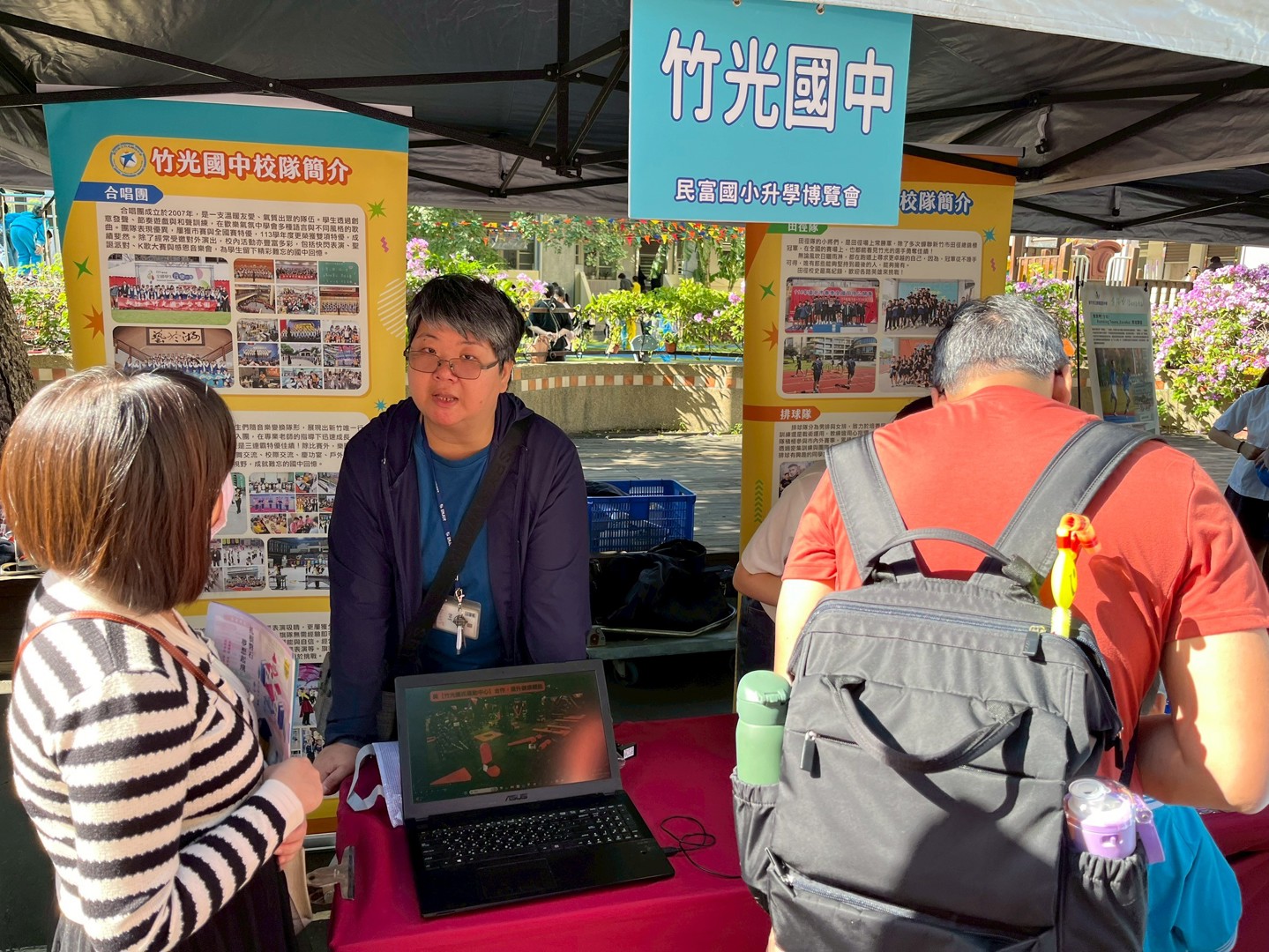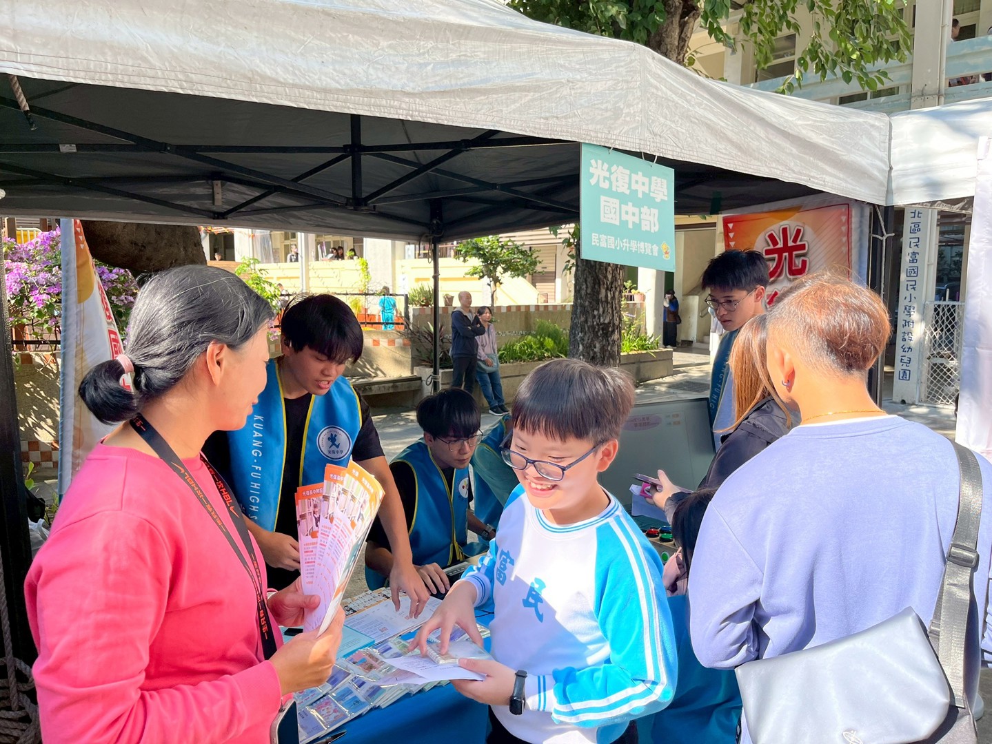 11月22日是本校110週年校慶園遊會,依照往例,輔導處邀請新竹市各公私立國中蒞校進行升學宣導,提供學生各國中端介紹或升學進路資料及諮詢,增進本校師生與家長對各國中端學校之認識與了解,協助學生進行生涯探索,進而選擇適合自己能力與興趣的學校或類班。今日天氣非常好,各個學校攤位前都擠滿學生與家長,大家都非常踴躍詢問與了解各校辦學特色,各校也卯足全力吸引學生與家長參觀與諮詢,今天的活動非常成功,希望對本校師生與家長有所幫助。