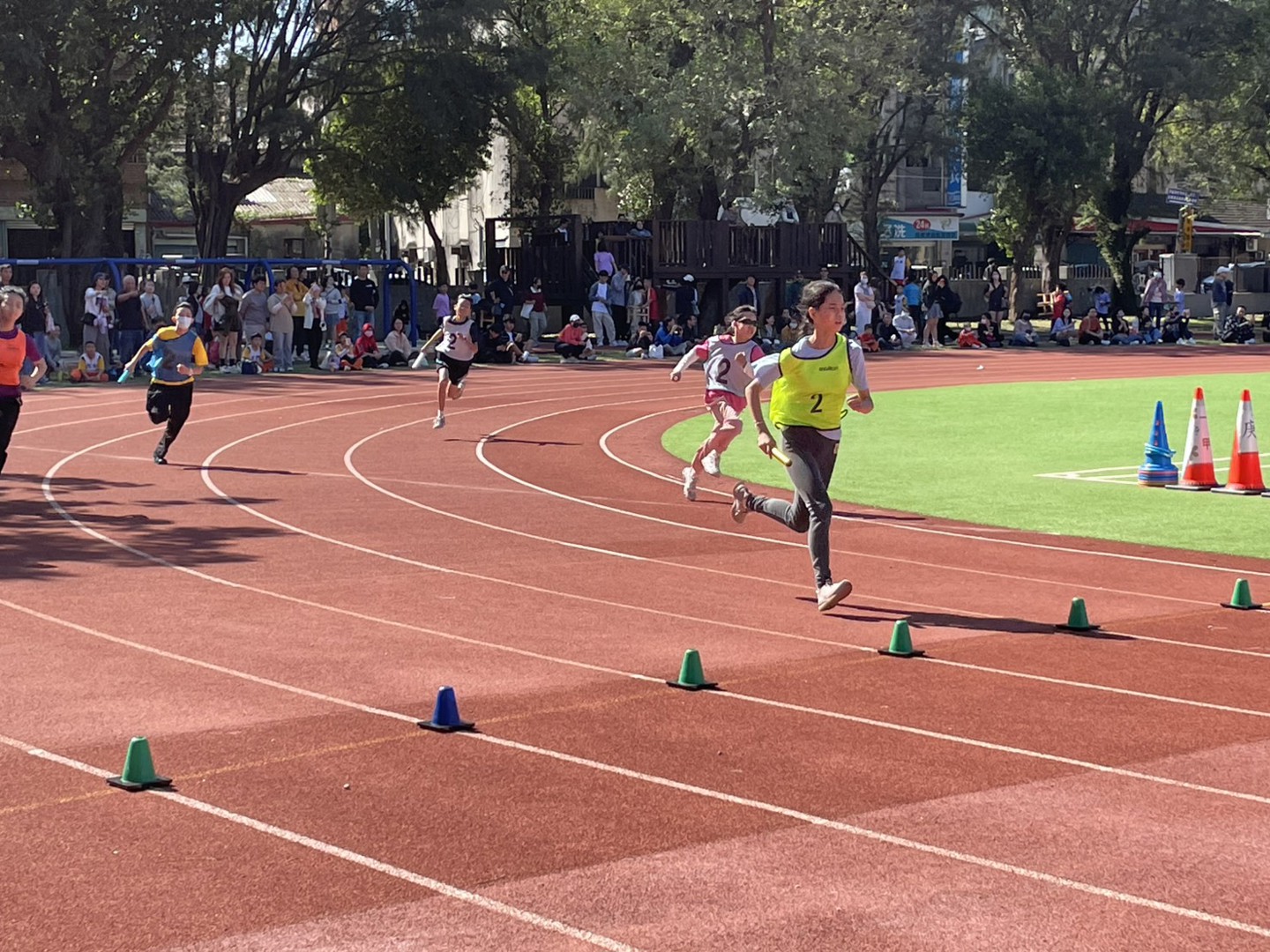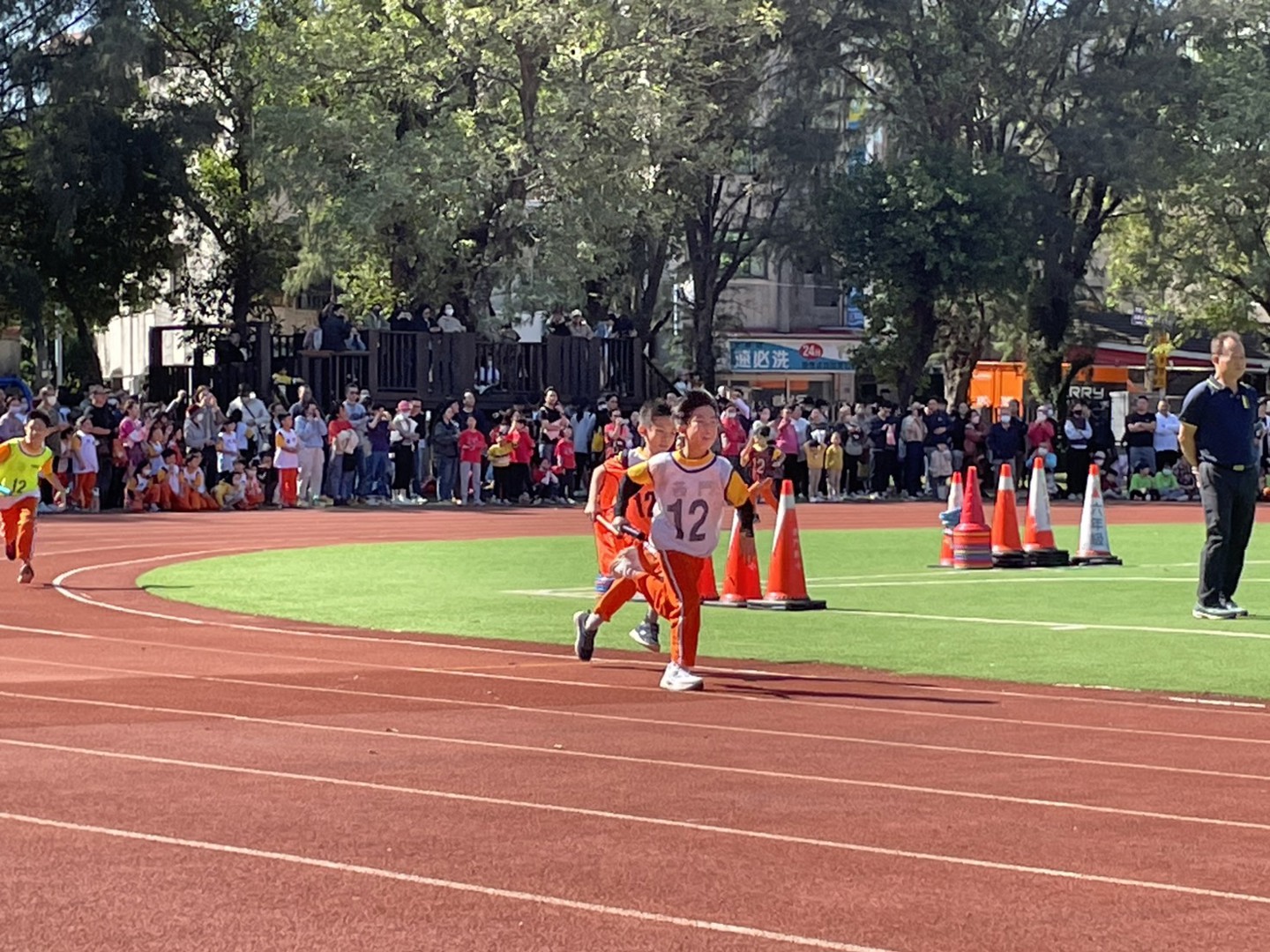 校慶的壓軸活動,就是最緊張刺激的大隊接力登場,今年有三到六年級的同學參加,各班第一棒的同學蓄勢待發,「碰!」槍聲一響,比賽開始!整個賽場頓時沸騰起來,跑道上的選手全力衝刺,究竟誰會贏,大家看得目不轉睛,「加油!加油!」聽到班上同學及場邊家長們加油打氣聲此起彼落,那些在運動場上的運動員們,一個個更是卯足了勁,為自己班上爭取榮譽!最後由教師組、家長組及六年級的同學一起在跑道上奔馳,畫下美好的句點。