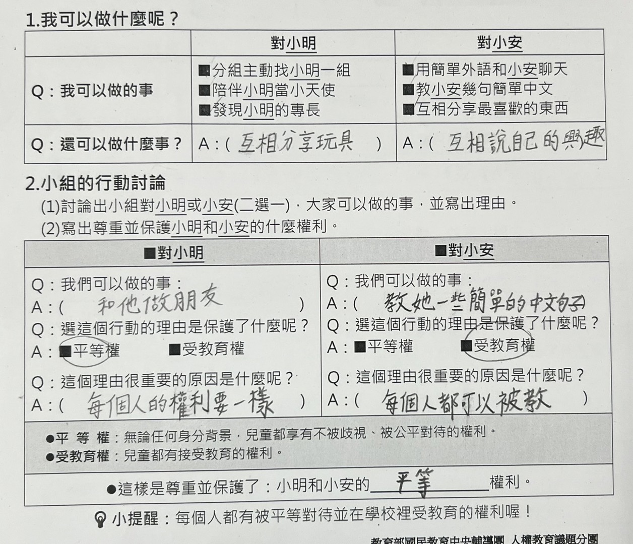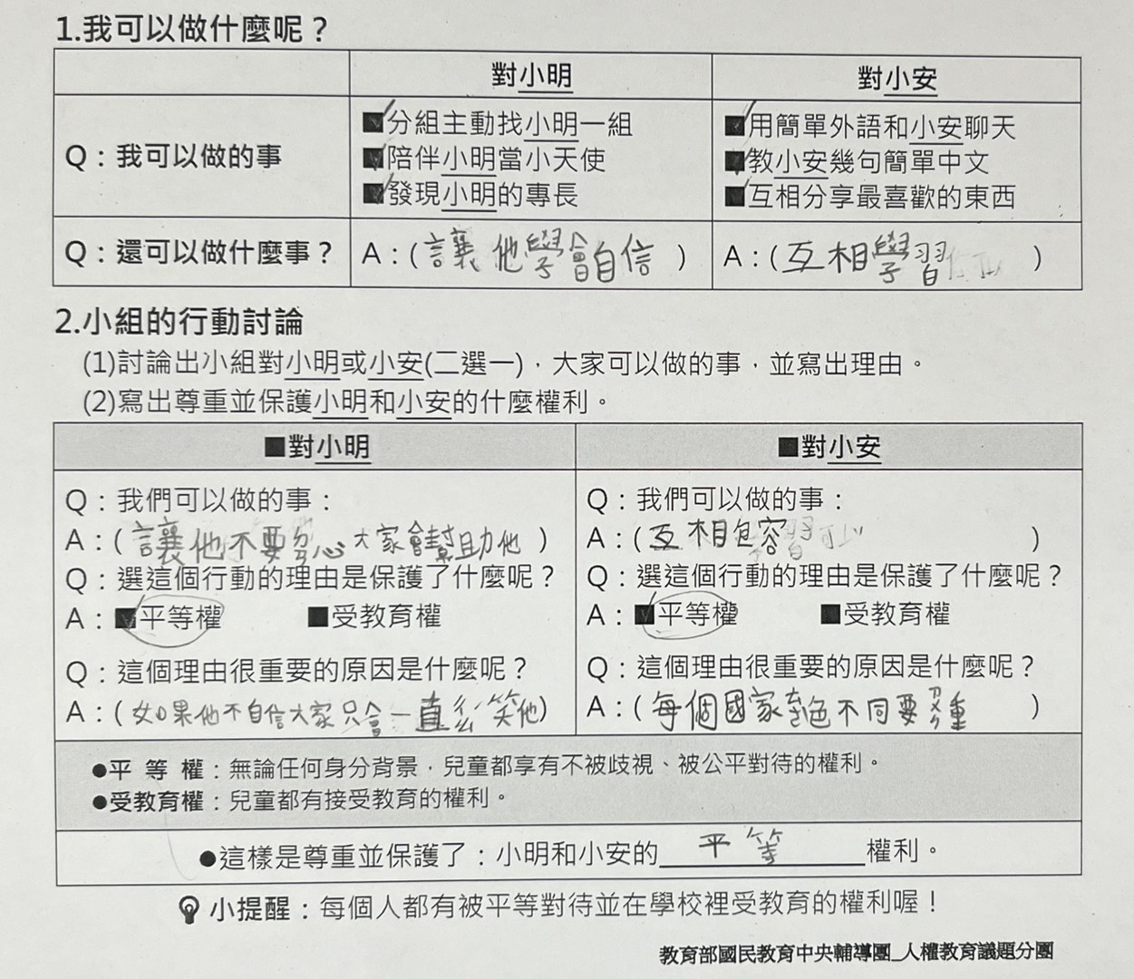 且能明瞭每個人都有被平等對待並在學校裡受教育的權利 !