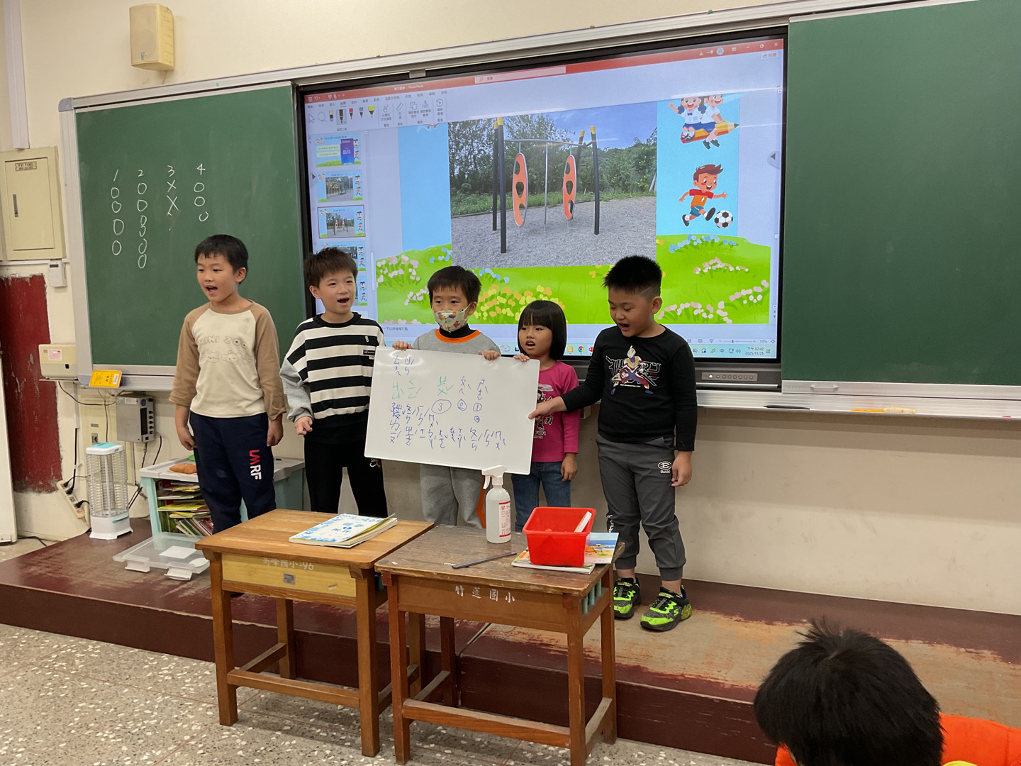 在組內共學環節中,老師引導學生利用 AirDrop 功能接收任務,並討論如何安全遊玩,這不僅訓練了學生探究與解決問題的能力,更將數位技能的學習與實際生活情境緊密結合 。隨後,學生還能使用平板相機功能,拍下安全使用遊樂器材的照片作為實作成果,充分展現了學生的即時應用能力與創意 。
