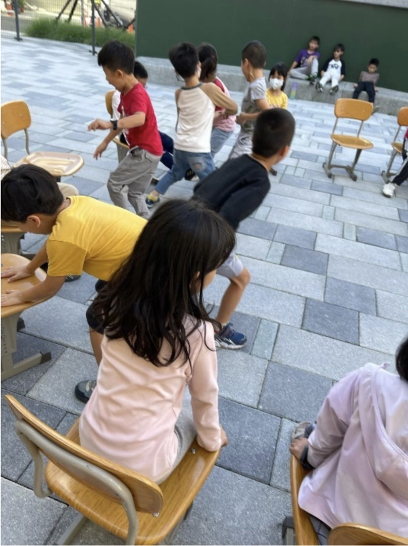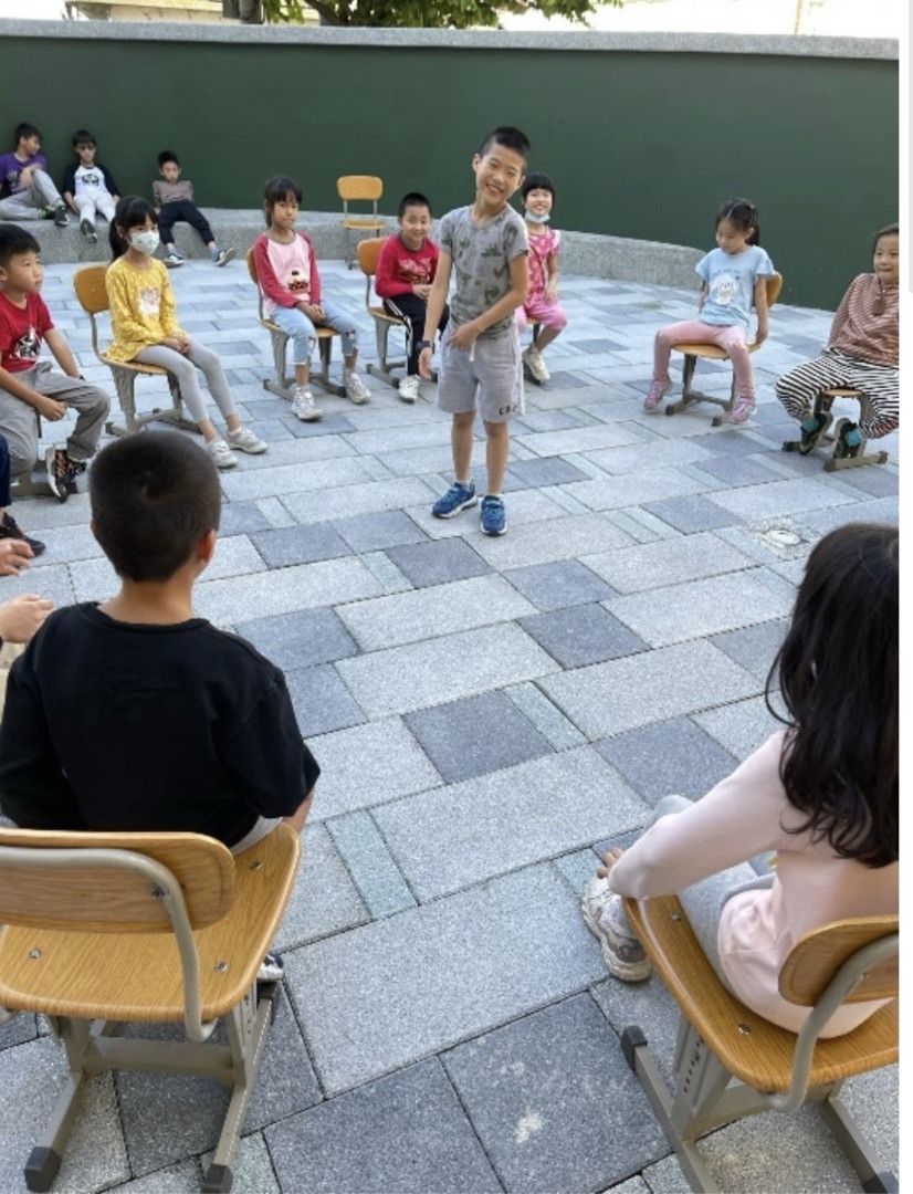 「大風吹」真的是簡單又刺激的團體遊戲,期中考完的下午帶著課後B班的小朋友把椅子搬到戶外,曬曬太陽、吹吹風,小朋友用宏亮的聲音大喊「大風吹」、「吹什麼」,再用最快的速度搶位置,真的是太好玩了!藉由此遊戲能訓練孩子們的辨別能力以及反應力,也讓他們好好放鬆了!