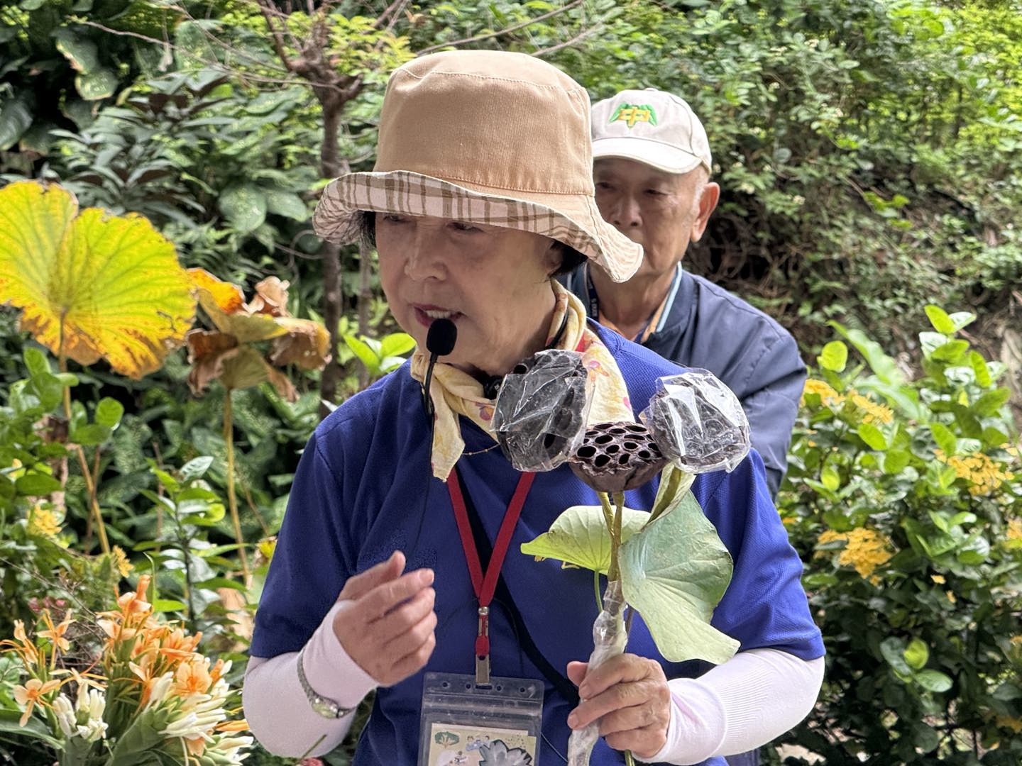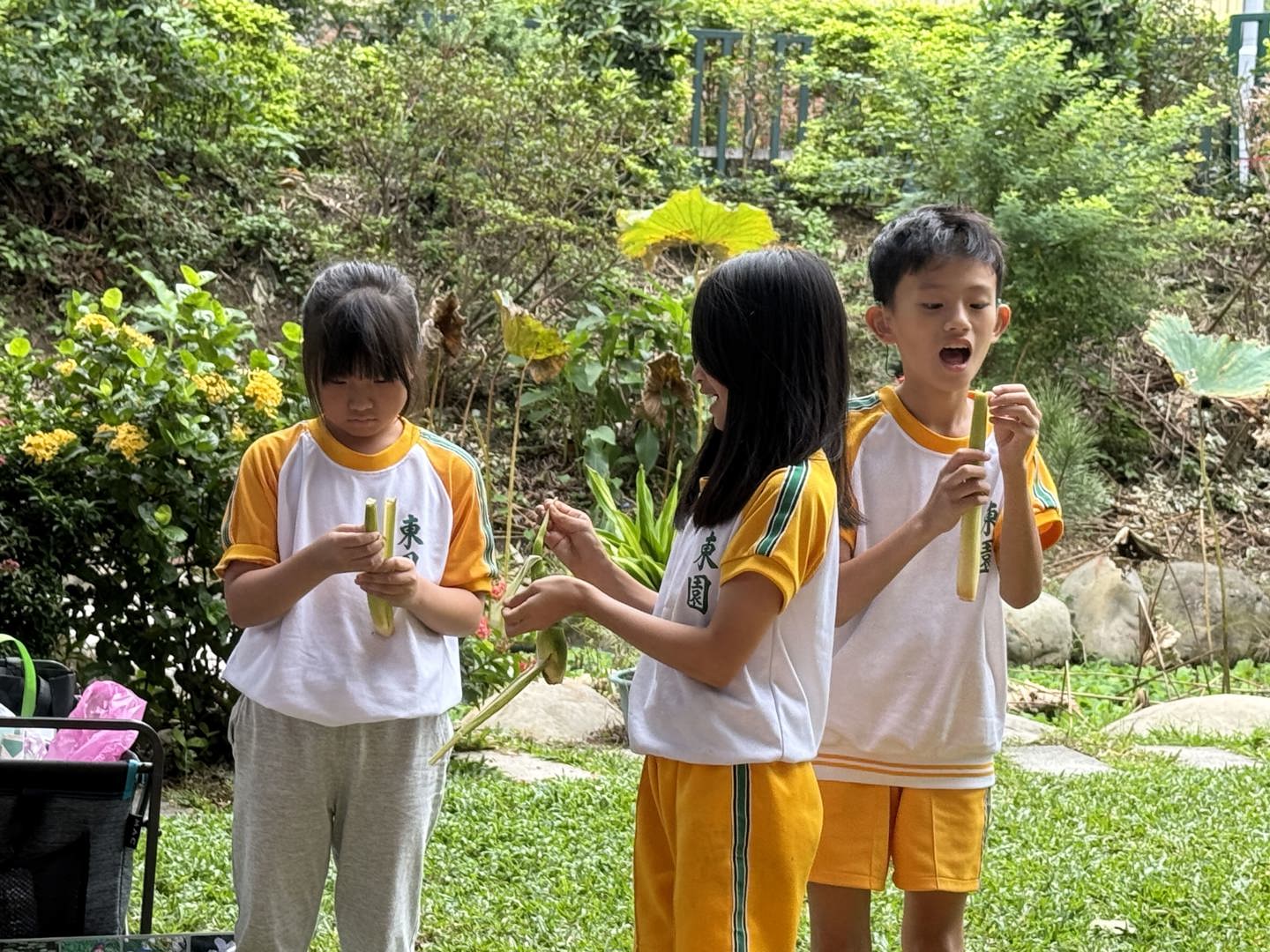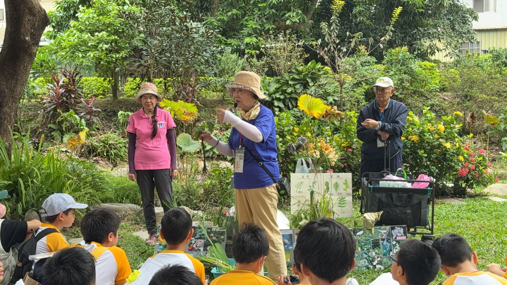 走到東山溼地,有請志工(荷花奶奶)為孩子們介紹溼地的形成及作用。志工奶奶為孩子們介紹了四大類的水生植物,由在地的長者及地方人士,將這些在地故事與記憶分享出來,孩子們都聽得入神。
