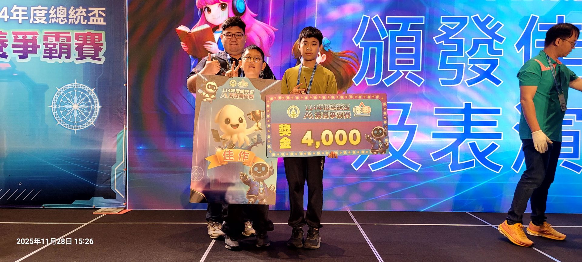 114年總統盃AI素養爭霸競賽全國總決賽於11月28日在台南盛大舉行,新竹市東區三民國小代表隊不負眾望,在全國眾多菁英隊伍中脫穎而出,榮獲「國小一般組」全國賽佳作!這群來自風城的科技小將,不僅展現了卓越的程式設計能力,更在古都台南的競技場上,發揮了冷靜沈著的團隊合作精神,為校爭光,也為新竹市寫下光榮的一頁。