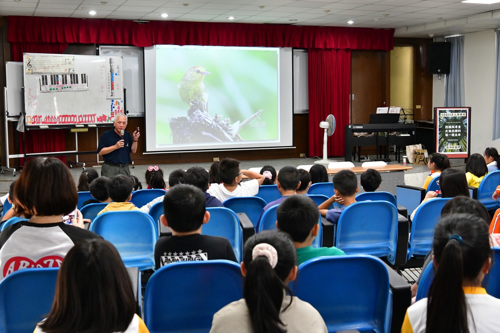 演講中,他多次提醒孩子遵守賞鳥原則:「賞鳥不傷鳥、觀鳥不關鳥」,強調尊重自然、保持距離的重要性。同時也鼓勵大家多親近自然,並邀請大家參加本週六(12/6)由新竹市野鳥協會在金城湖舉辦的賞鳥活動,將課堂知識帶到戶外實際體驗。