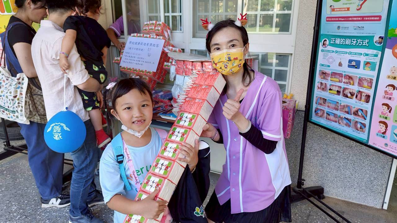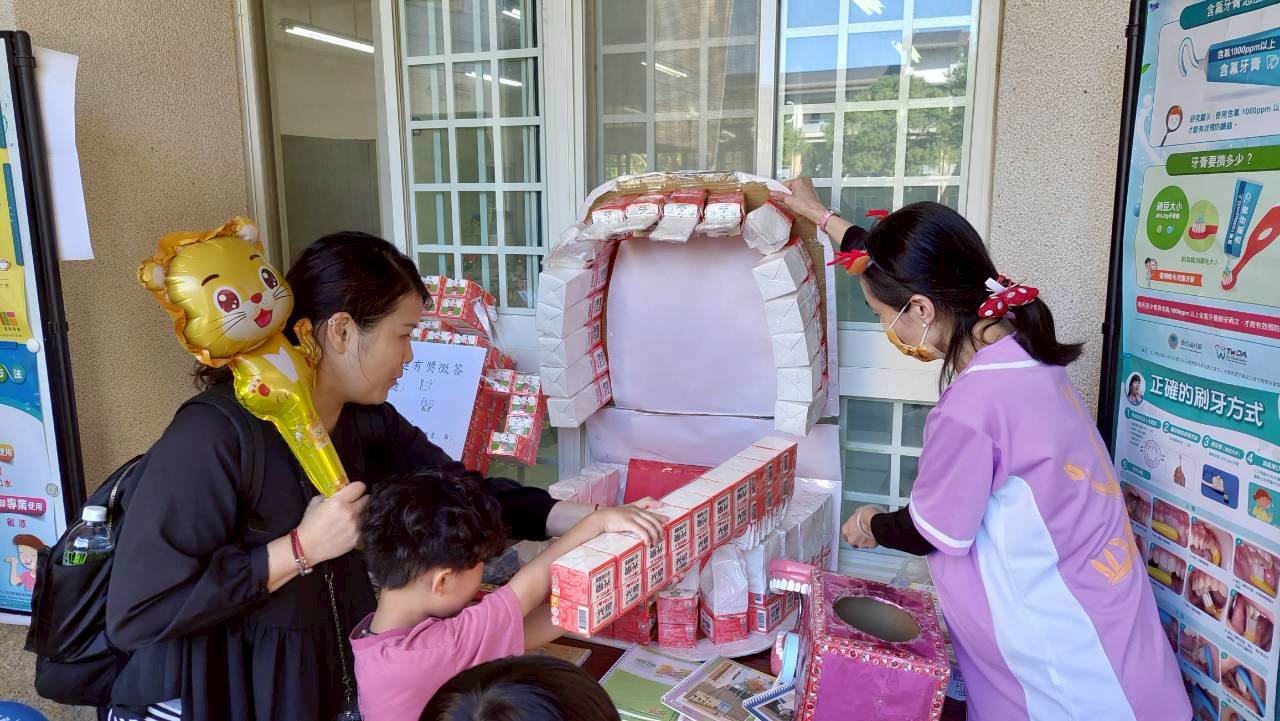 高峰國小口腔裝置藝術:空牛奶盒做成的大牙齒和