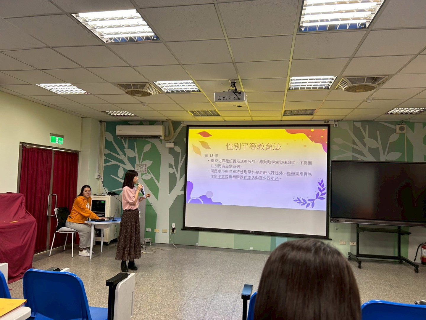 為提升全校教師在性別平等教育上的教材運用能力,並確保性平法規定「每學期應實施性別平等教育相關課程或活動至少四小時」之落實,本校輔導室特別辦理「性別平等教育教材推廣研習」,透過校本課程介紹、教材分享與資源整合,協助教師在教學現場更有效推動性平教育。