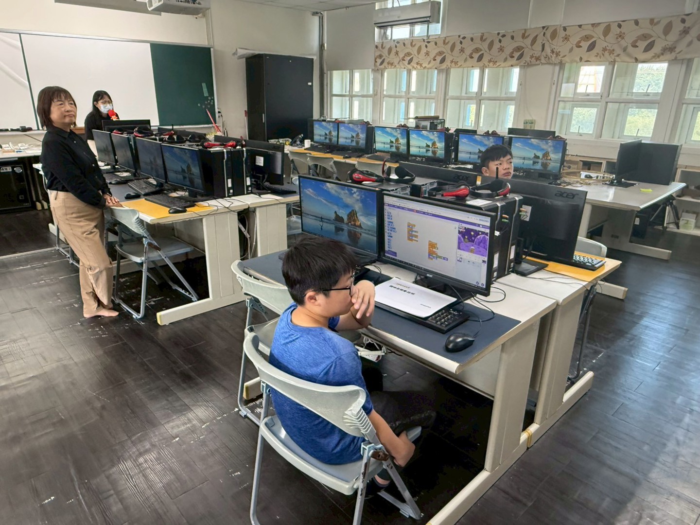 在鍵盤的「喵」聲與程式方塊的跳動中,南寮國小的小小程式高手 #傅晨皓 #吳晨睿 兩位選手,火熱投入 #新竹市貓咪盃賽前集訓!