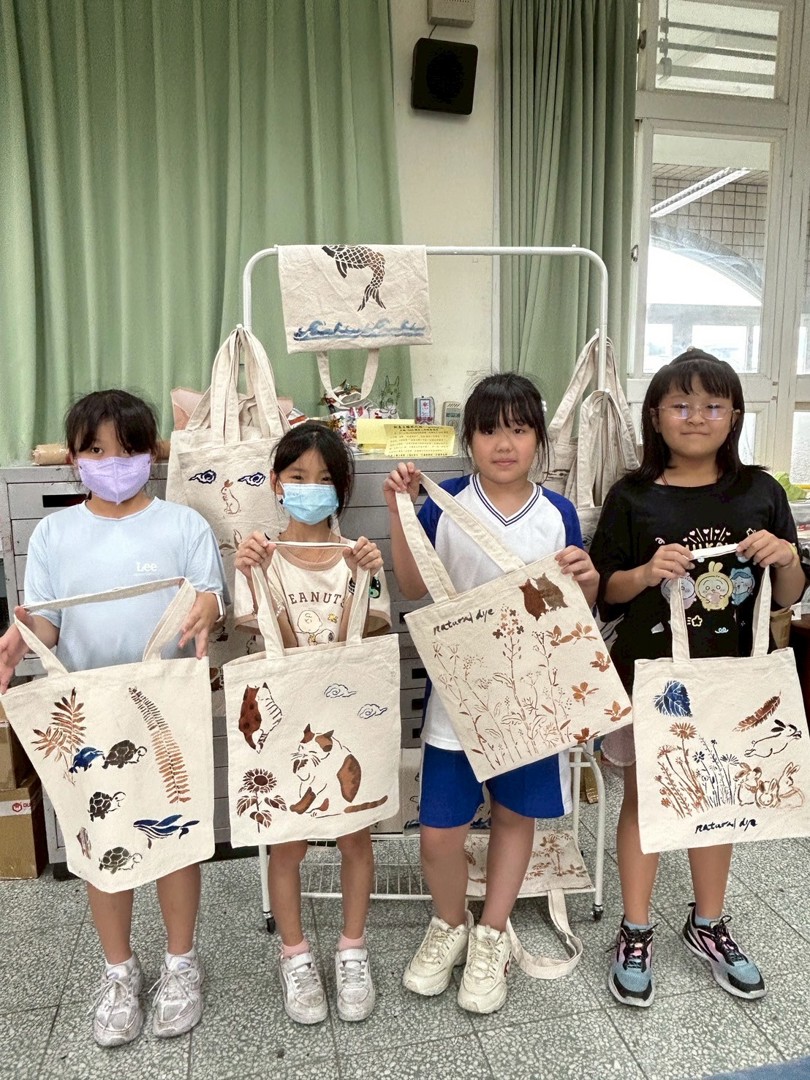 可愛的四年級寶貝們,帶著自己在藝術課用天然染料親手製作的美麗環保袋,步行前往目的地,用環保袋可以減少塑膠袋的使用,天然染劑減少對環境的汙染,落實藝術融入生活的理念並展現朝山學子對環境永續的關懷與具體實踐。