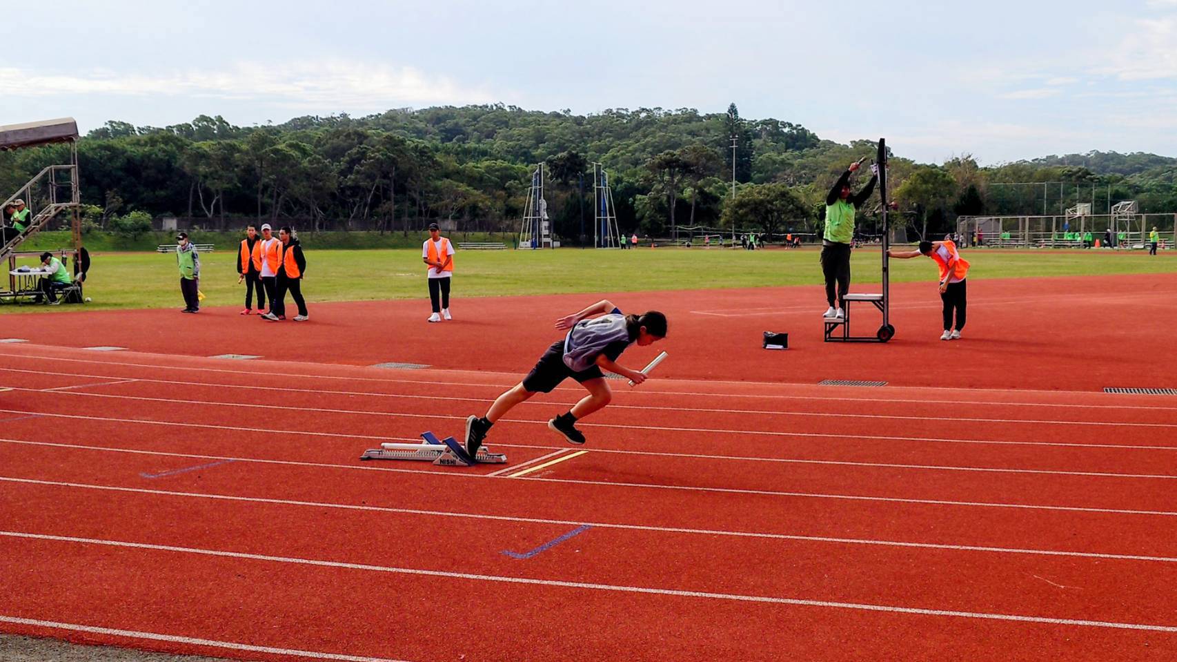 在比賽當天,大巴載著同學們到成德高中,下車後走上長長的陡坡,身體都熱了起來,觀摩了國中組的比賽,就換我們上場了,雖然有點緊張,但大家都拚盡全力,最後不負眾望獲得第二名,順暢的完成接棒贏得比賽,證明了努力和團隊合作精神的重要性。