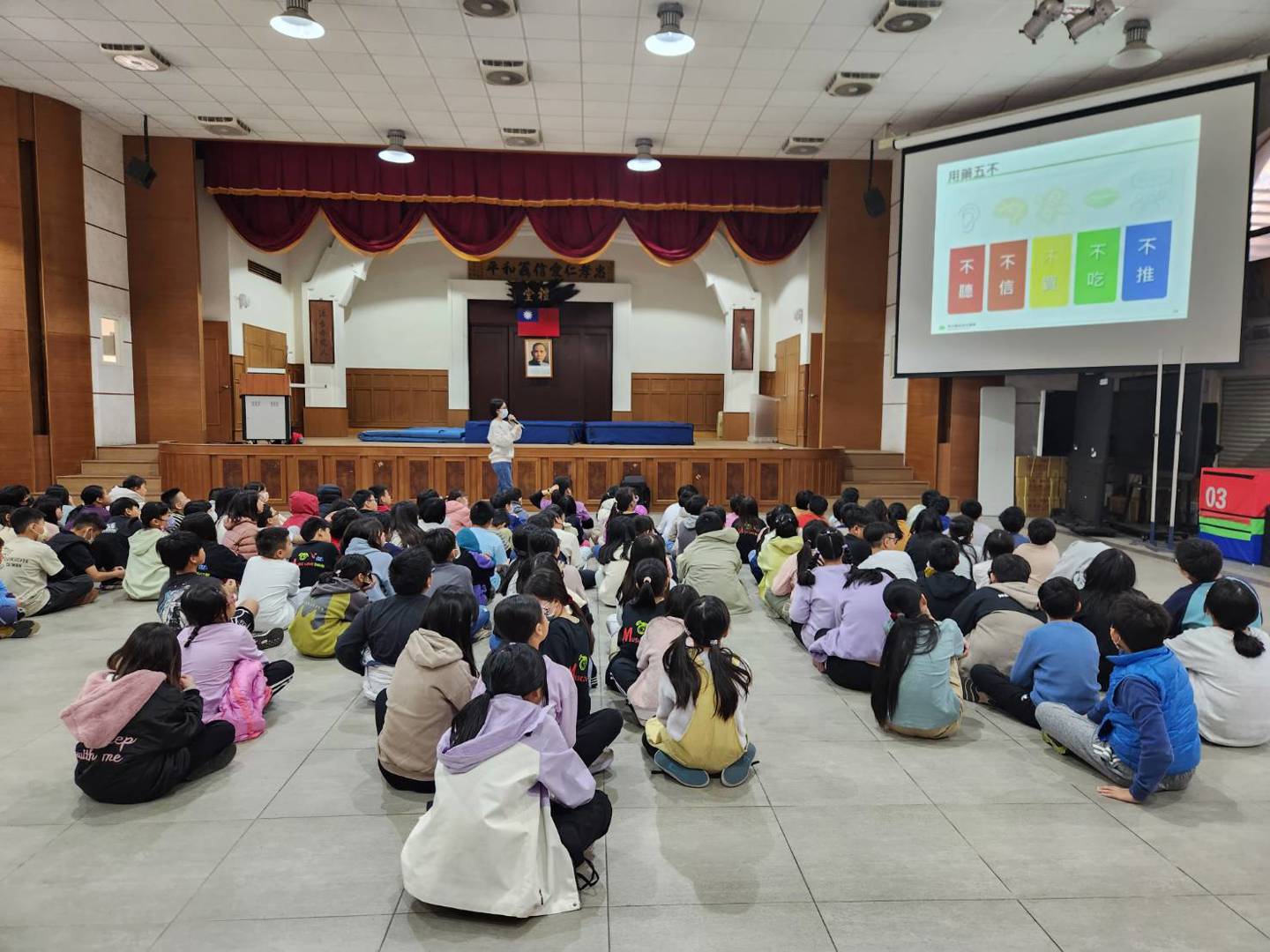 為提升學生用藥觀念,本校於今日辦理五年級「正確用藥」講座,並邀請國泰醫院楊宇珊藥師到校分享用藥知識。宇珊藥師以生動有趣的比喻,引導學生認識藥品標示,並說明用藥時應注意的事項及常見藥品的正確使用方法。