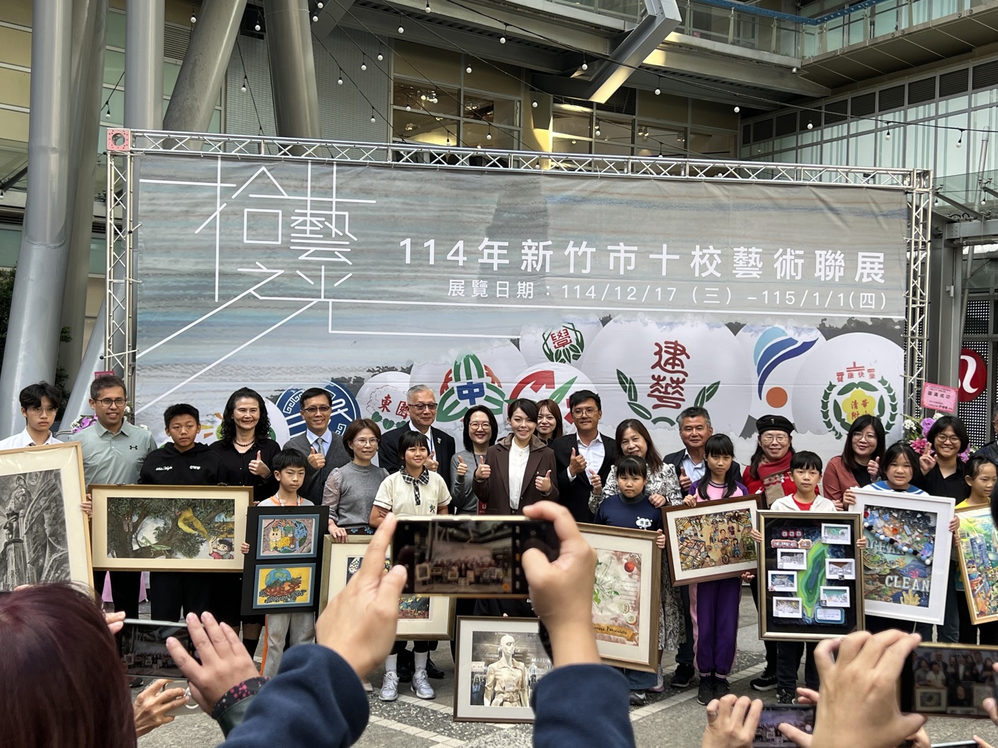 由建華國中主辦的「拾藝之光」十校聯合畫展,今天上午於巨城舉行開幕式,新竹國小獲邀參展數年,學生畫作內容豐富,不分年齡層從小二到小六,皆可參加校內初選。