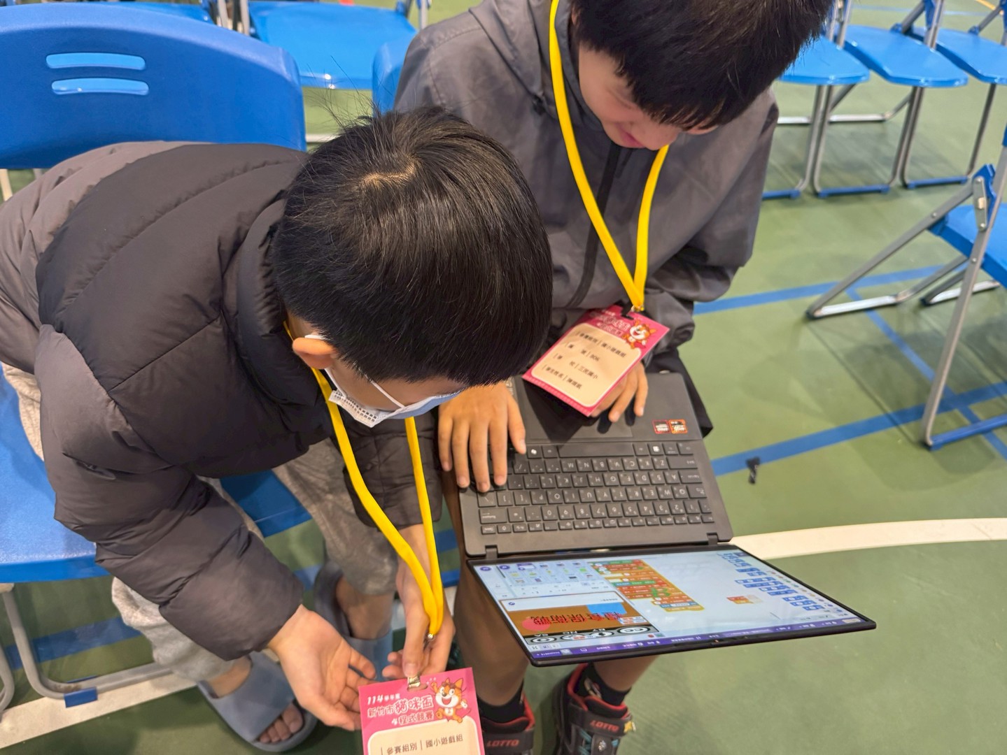 遊戲組 則由 陳O玄老師 帶領 陳O凱、吳O晏 同學,同樣善用午休時間投入練習,從遊戲規則設計、操作介面到除錯優化,逐步完成作品,並在 33支隊伍 中獲得佳作。學生在設計過程中學會分工合作、耐心嘗試與問題解決,累積寶貴的參賽經驗。