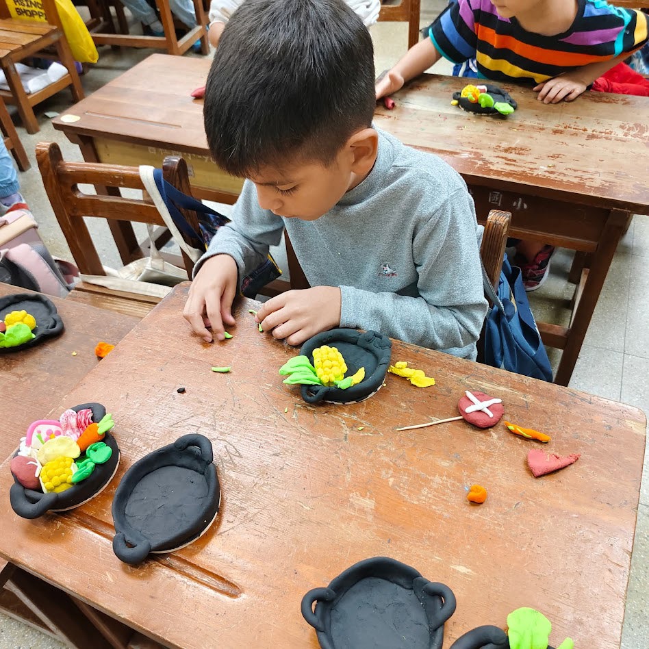 黏土課,老師帶著同學們一起做「火鍋」。大家聽到這個主題,都覺得很有趣,也很期待。