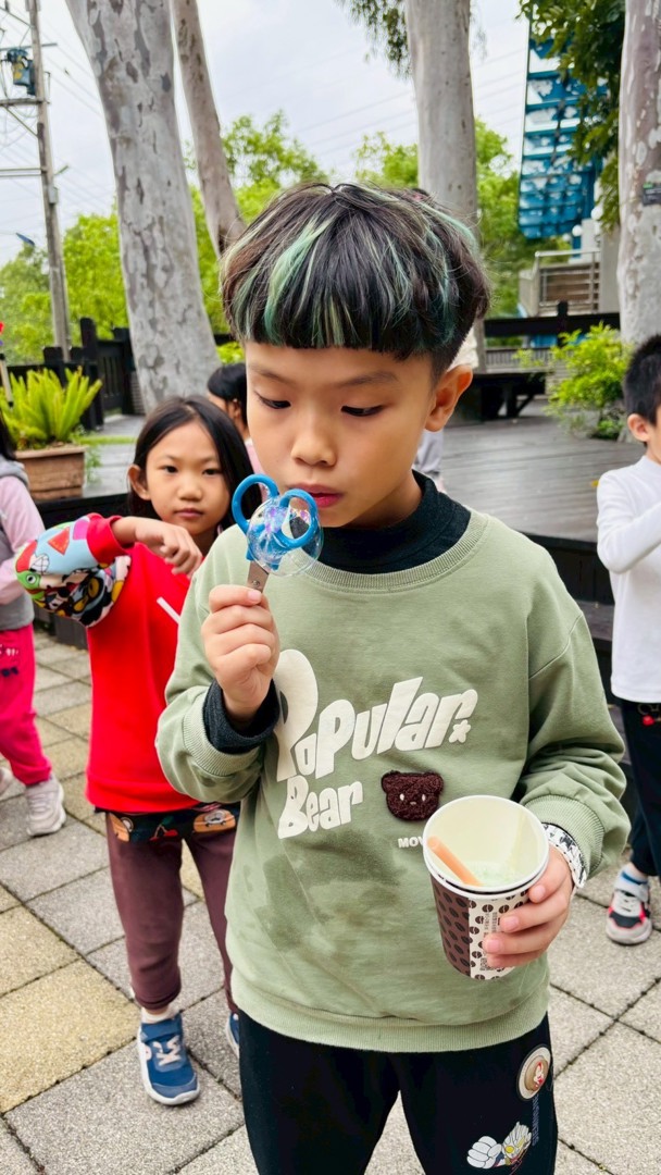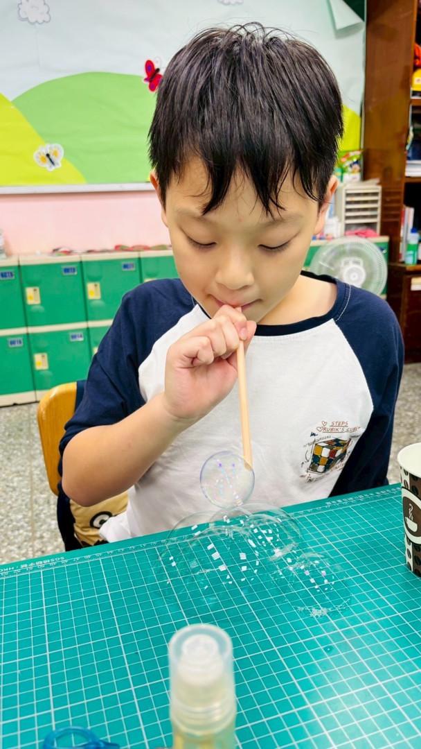 課程最後,老師介紹了泡泡藝術的表演,讓孩子們知道原來泡泡也能走上舞台,成為表演的一部分。這堂生活課,孩子們在泡泡飛舞中體驗科學、感受藝術,也留下了滿滿的學習回憶。