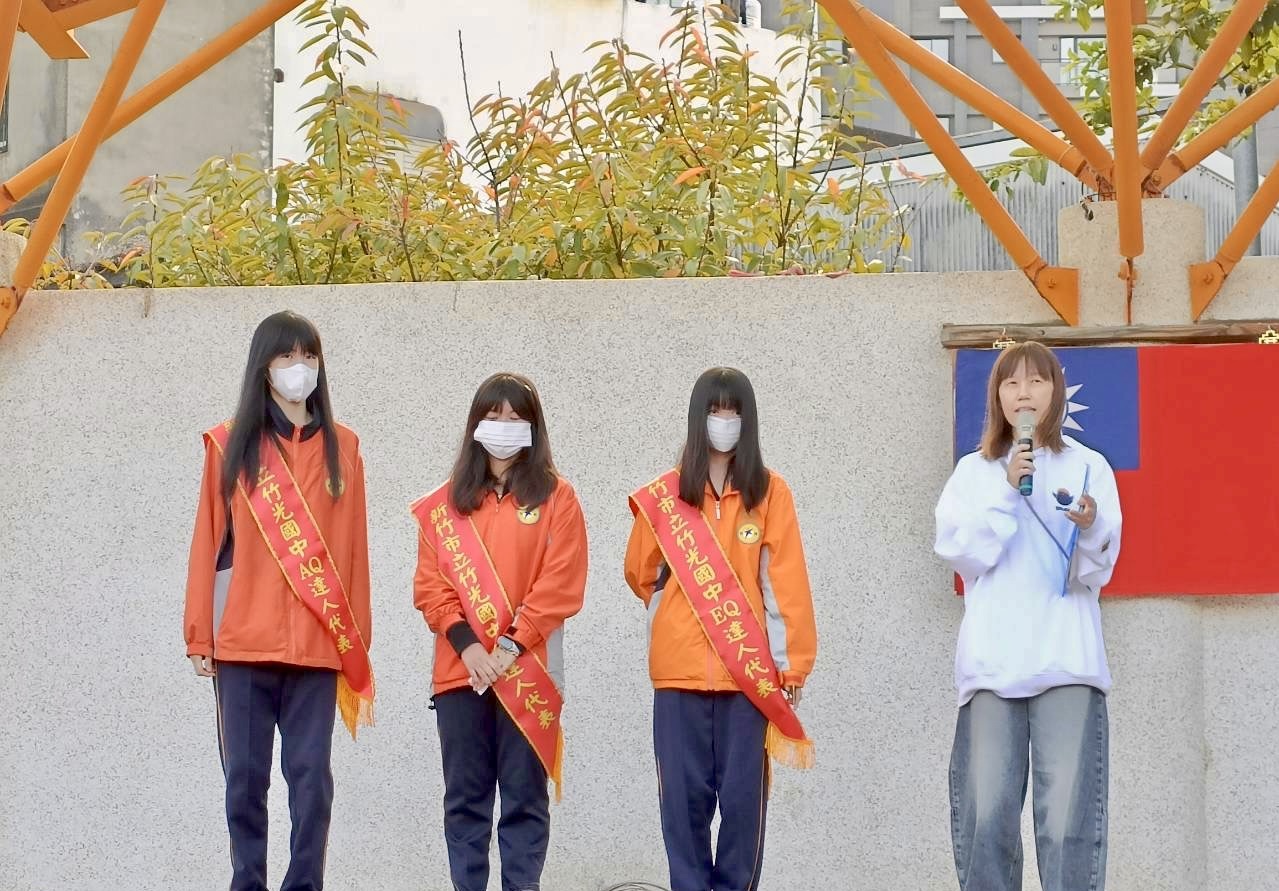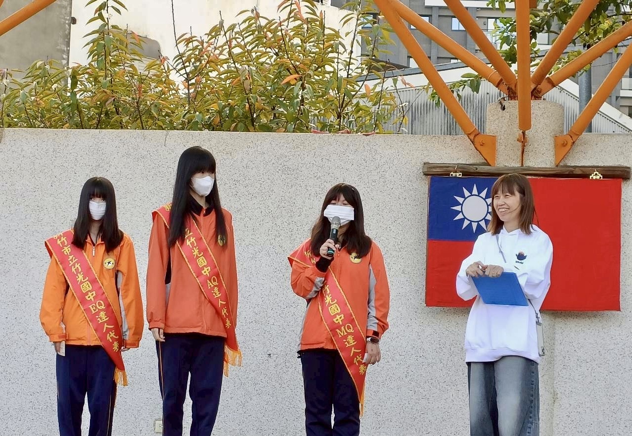 本校3Q達人的遴選方式是由先各班推選班級的AQ逆境達人、MQ道德達人、EQ情緒達人,然後再進到校內進行書面複選,最後決賽由校長和處室主任們親自面試,選出竹光國中的3Q達人,代表參與全市競賽。三位代表學校參賽的同學分享自己的生命故事,AQ逆境達人華均羚同學分享之前準備科展比賽的時候,不論試了多少次,實驗一直失敗,雖然感到非常挫折,但是在自己堅持不放棄,以及團隊共同合作下,終於完成比賽。MQ道德達人楊晨妤同學認為「每個人都可以選擇你想要成為什麼樣的人,也可以選擇用什麼樣的方式去對待別人」。所以小組分工時,自己犯錯了,應該主動承擔;但是萬一其他成員出錯了,也不要大聲指責。因為「世界上最大的力量,就是理解和包容。」當我們願意理解別人、尊重別人、包容別人的同時,我們的世界就會變得更大、更溫暖。EQ情緒達人林湘晴同學則是分享「如何自我情緒管理」,雖然自己個性較為內向,但是遇到有壓力的時候,會主動去嘗試不同方法來調適自己的心情,最後學習跟自己的情緒共處。