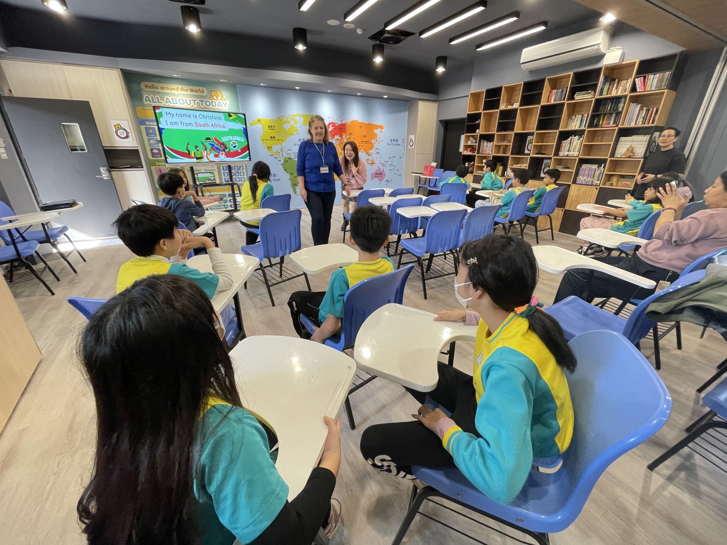 本次活動特別邀請兩位分別來自夏威夷與南非的外籍老師帶領。情境中心大門一開啟,兩位老師便以流利的英語以及生動、富有感染力的肢體語言迎接學生,成功突破語言藩籬,營造出活潑且具備沉浸感的學習氛圍,讓學生彷彿置身國外教室。
