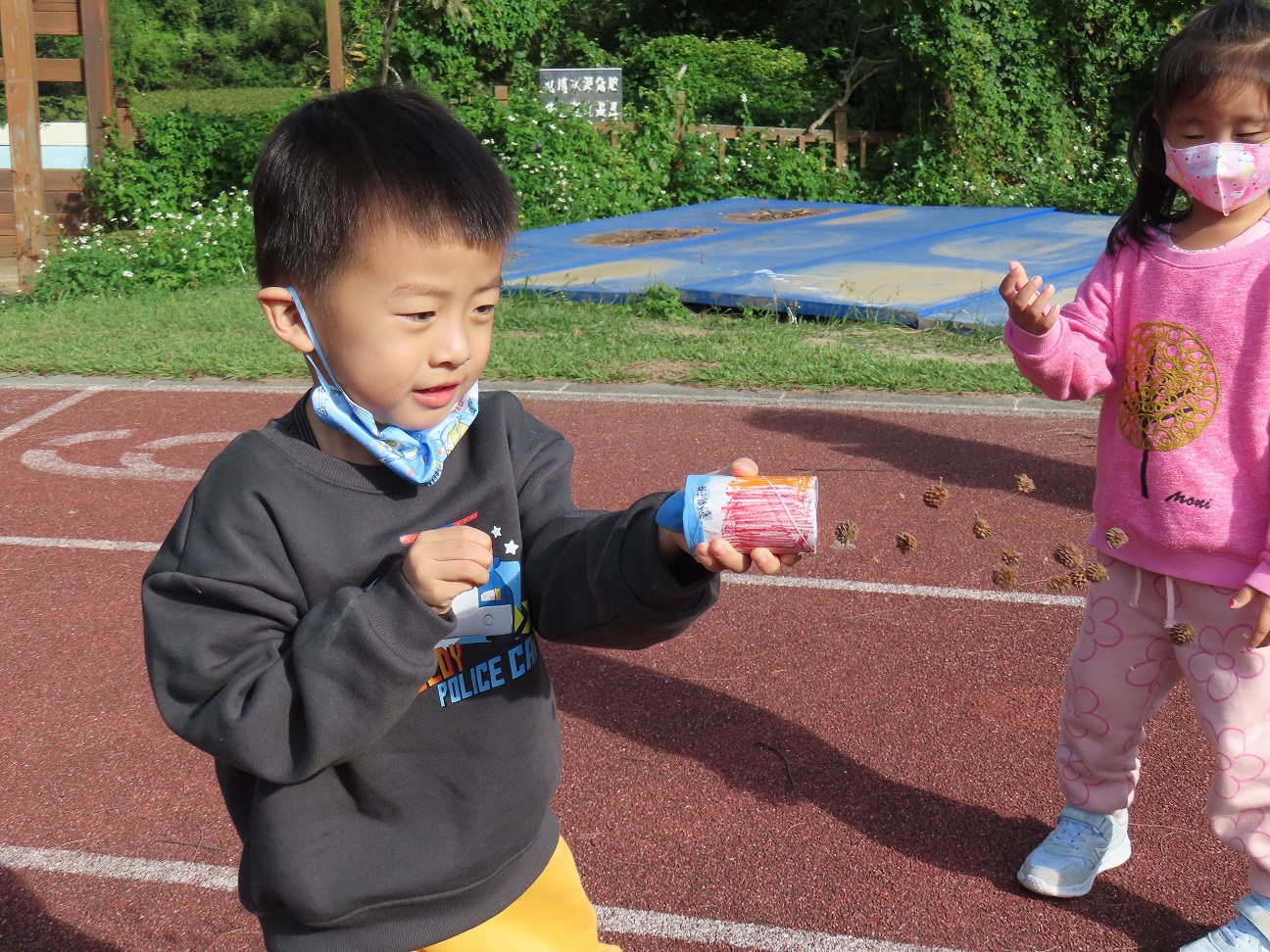 戶外踏查時,孩子們持續對於種子和果實展現興趣和熱情,主動和老師分享撿拾到的果實及新發現,攀爬遊戲場的鋪面上掉落的阿勃勒果實裡有好多螞蟻、木麻黃種子被風吹到遙遠的籃球場…,為什麼會這樣呢?透過《一顆種子的旅行》繪本,與孩子回顧先前種子神奇技法的探究經驗,更結合新觀察發現與理解種子旅行更多的方法及大樹媽媽和種子寶寶間的關係。