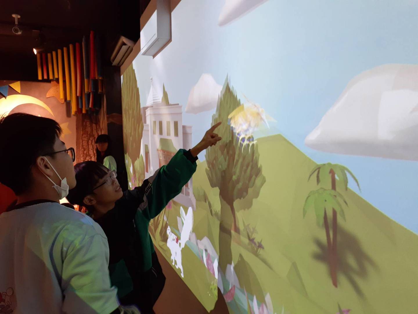 享用完餐點後,下午進行各種互動設施體驗,例如「創藝島」讓學生將自己的畫作掃描,投影成生動飛翔的鳥類動畫。也參觀了各種主題展,例如黃坤伯先生「青山.依舊在」油畫展。接下來各班分組參觀藝教館戶外裝置藝術、台北植物園、以及周邊展區等。最後,藝教館還送了精美的音樂簿筆記本,感謝藝教館老師的悉心導覽,這趟藝術之旅讓我們收穫滿滿。
