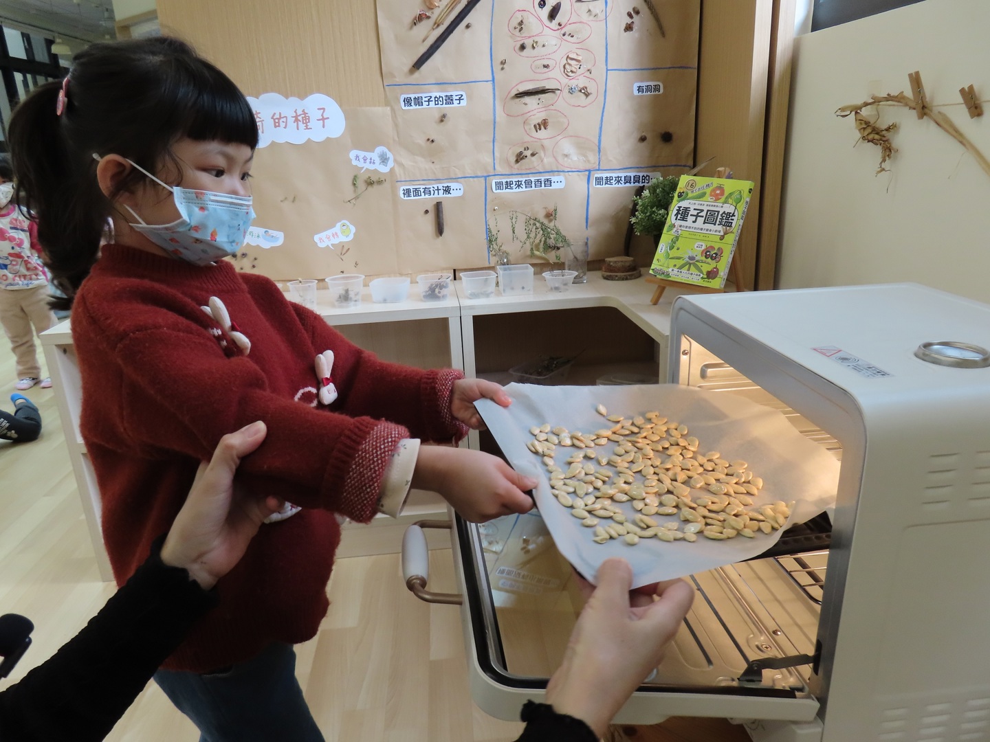 於是我們開始在日常生活的食材嘗試尋找可以吃的種子,發現人類也可以吃種子,透過這些生活中的實際體驗,孩子理解到:不是所有種子都有毒,人類可食用的種子非常多!而且種子富含營養,對人體有許多好處喔!