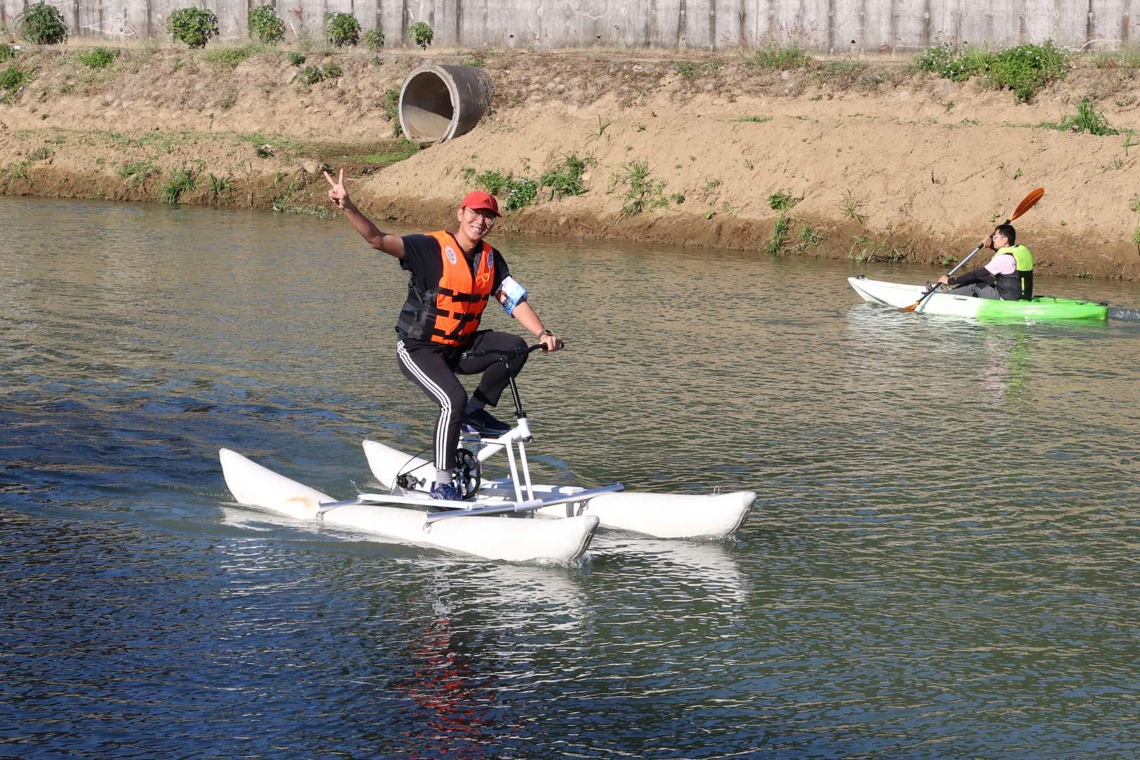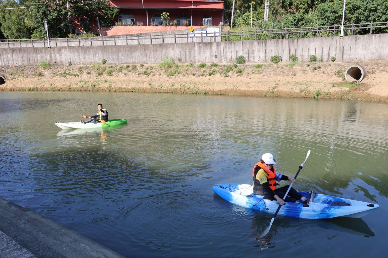 在掌握基本要領後,三民國中的同學展現了高度的團隊精神。大家合力將獨木舟從存放區搬運至客雅溪畔,透過分工合作,體會「同舟共濟」的真諦。隨著獨木舟緩緩入水,同學們兩人一組,在波光粼粼的客雅溪上盡情划行。