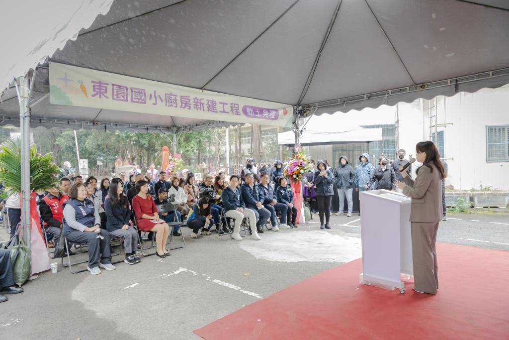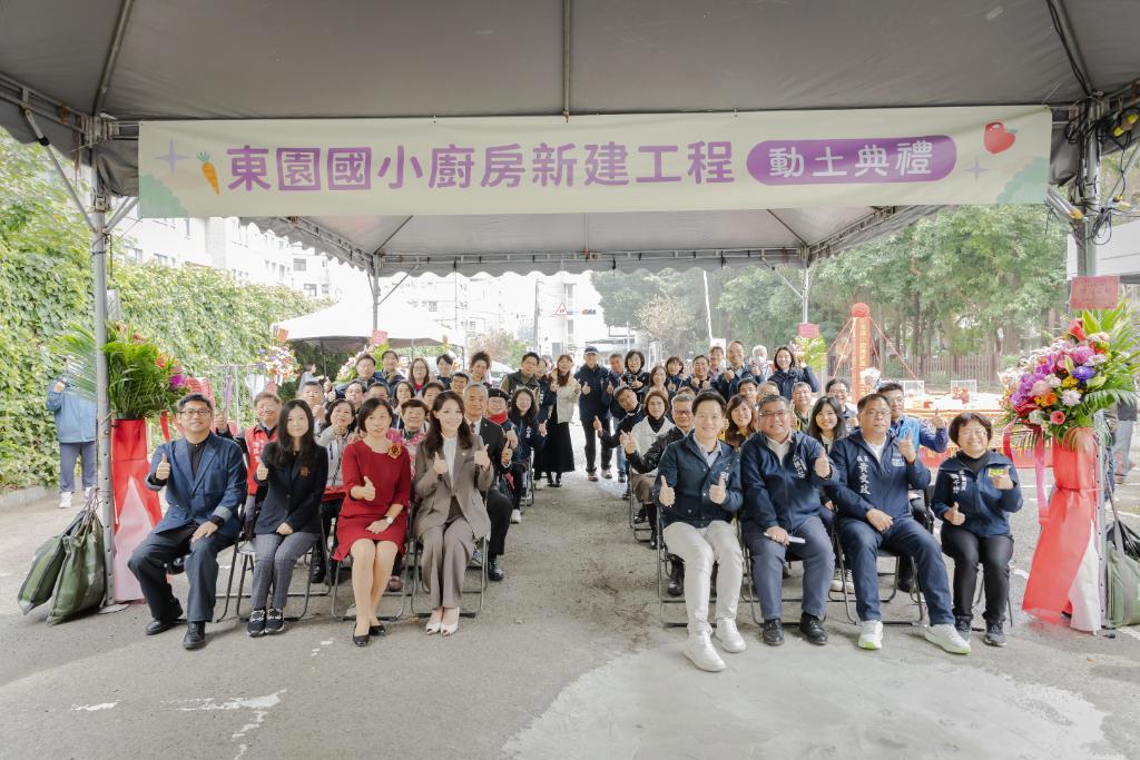 東園國小創校 70 多年,目前有超過 2,200 位師生。過去午餐需仰賴外校供應,為了讓孩子吃得更熱騰騰、更健康,市府挹注近 6,600 萬元,打造兩層樓的現代化營養午餐廚房,就在今天正式動土開工!