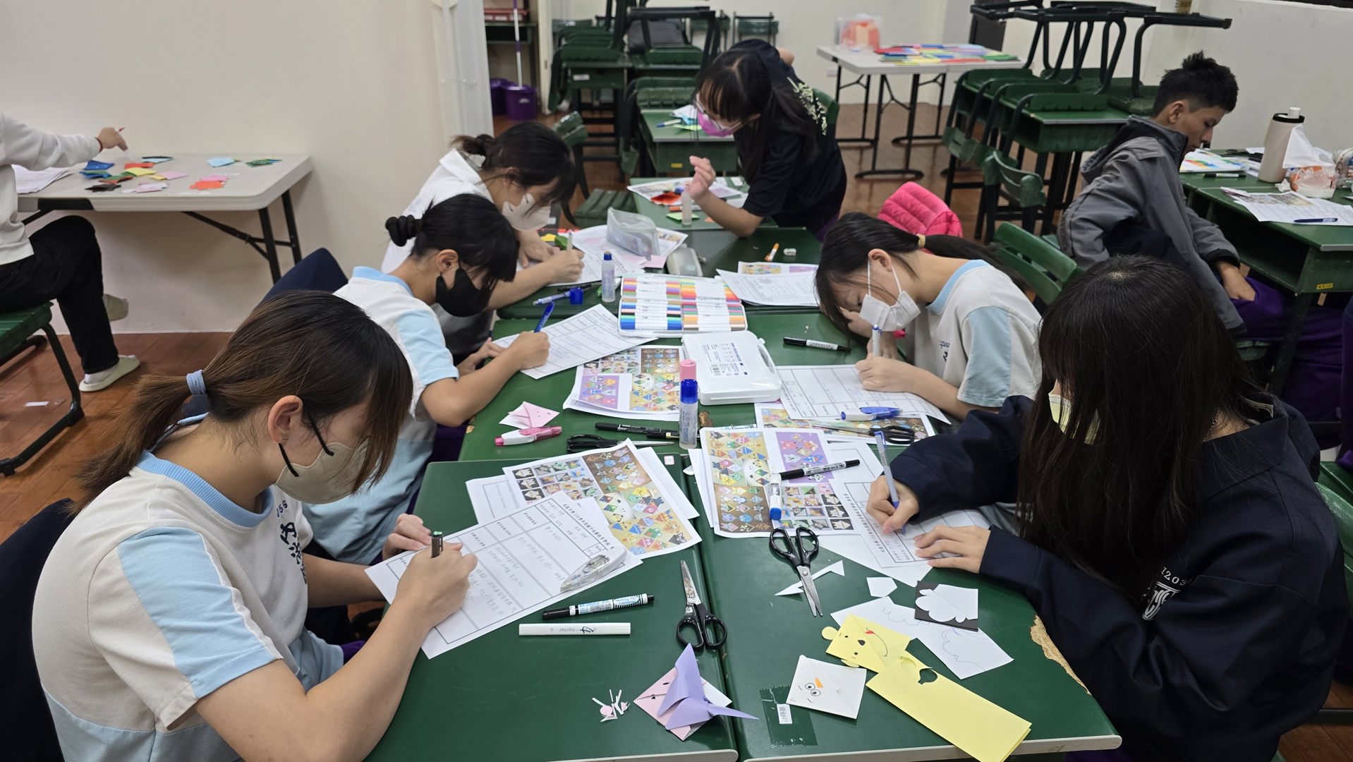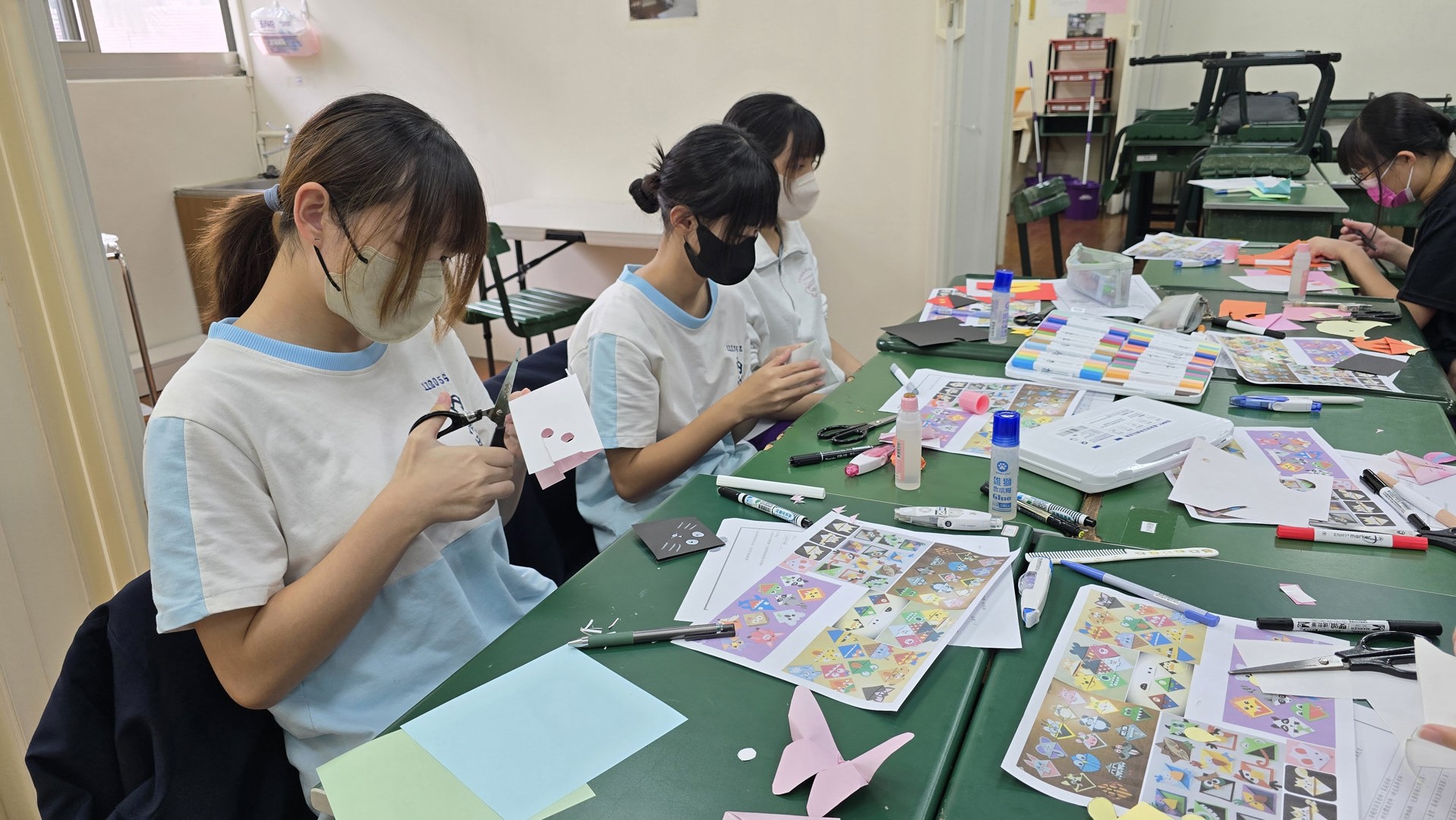 色紙、粉彩紙、剪刀、膠水、丙烯筆