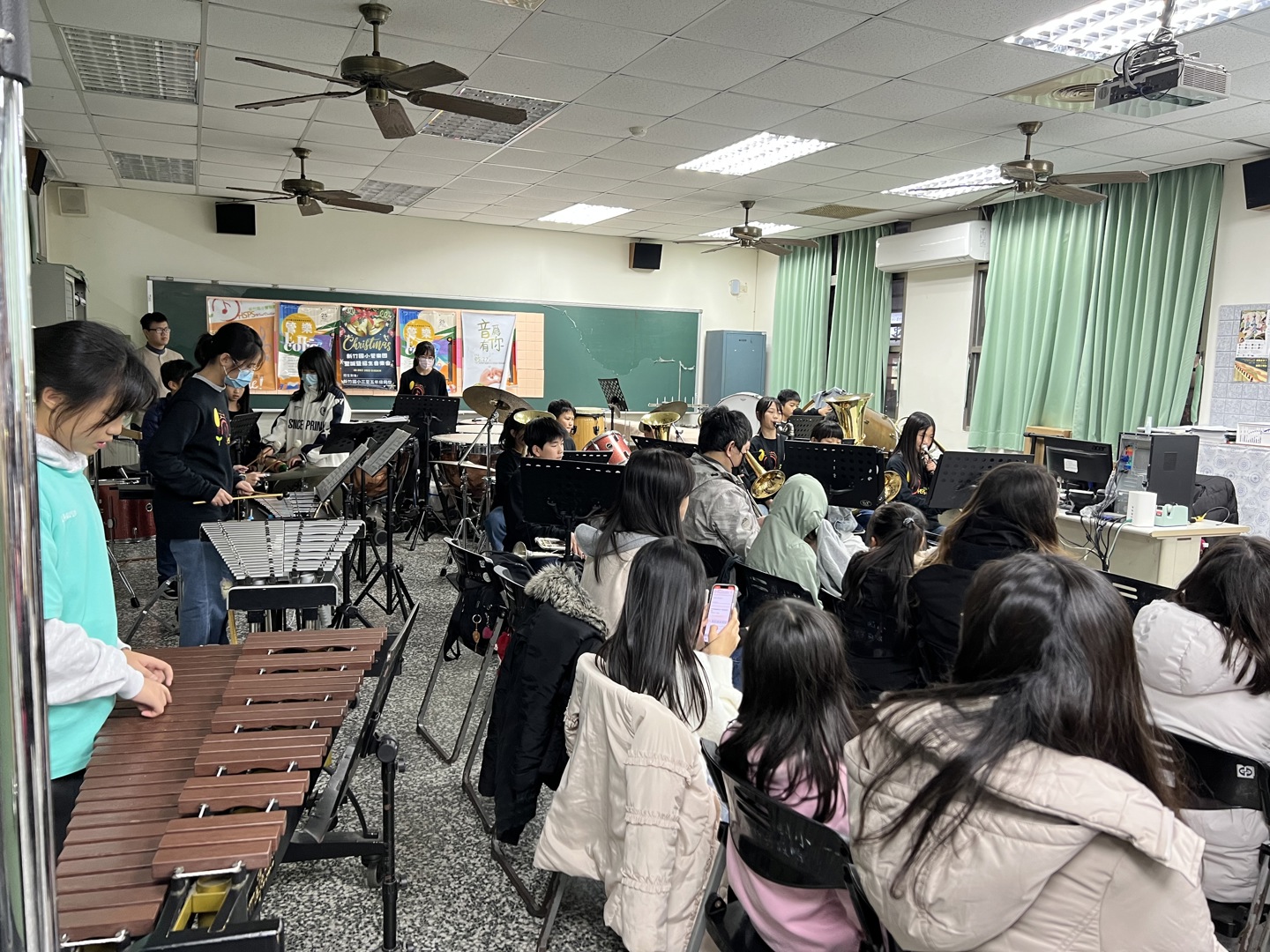 竹小管樂團今晚於音管教室舉辦家長參與說明會,活動一開始由學長姐們演奏樂曲開場。如茵校長也到場表示鼓勵。 為使家長更了解孩子在學校管樂團的訓練情形,曉慧老師做了充分的介紹,隨後學長姐們現場示範各種樂器的吹奏技巧,除了讓家長們能對最後選樂器有初步的了解之外,更能親身感受管樂團訓練的紮實。 在演出環節中,學生上臺以小號、薩克斯風等樂器表演精彩曲目。整體演出精湛動聽,也讓家長們對孩子在學校的訓練表示由衷欽佩。
