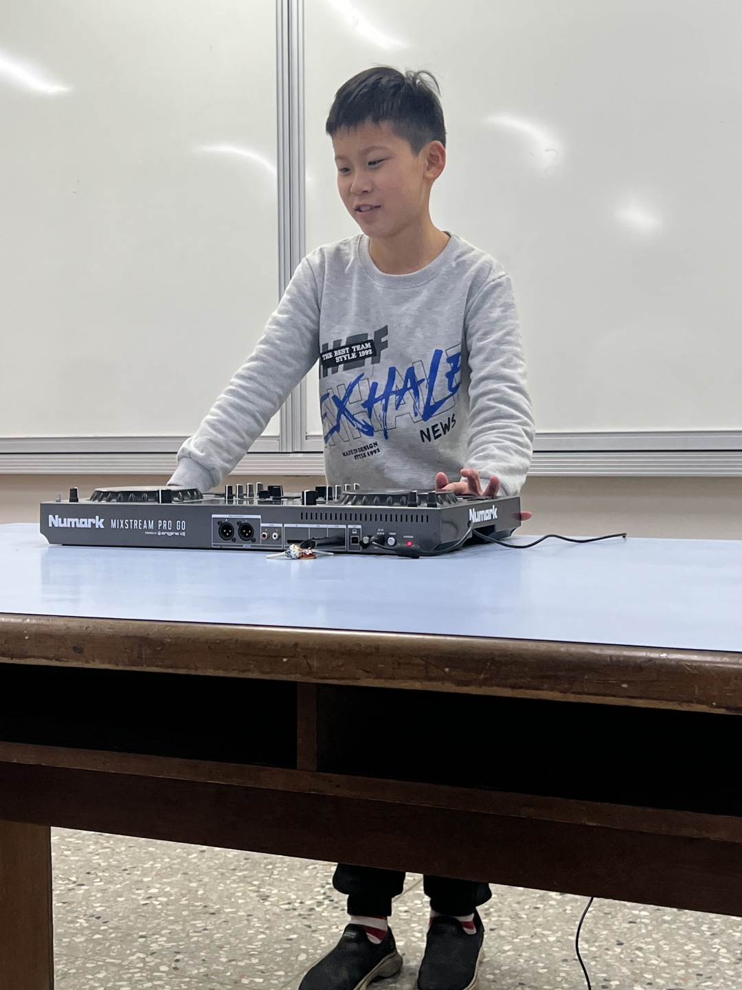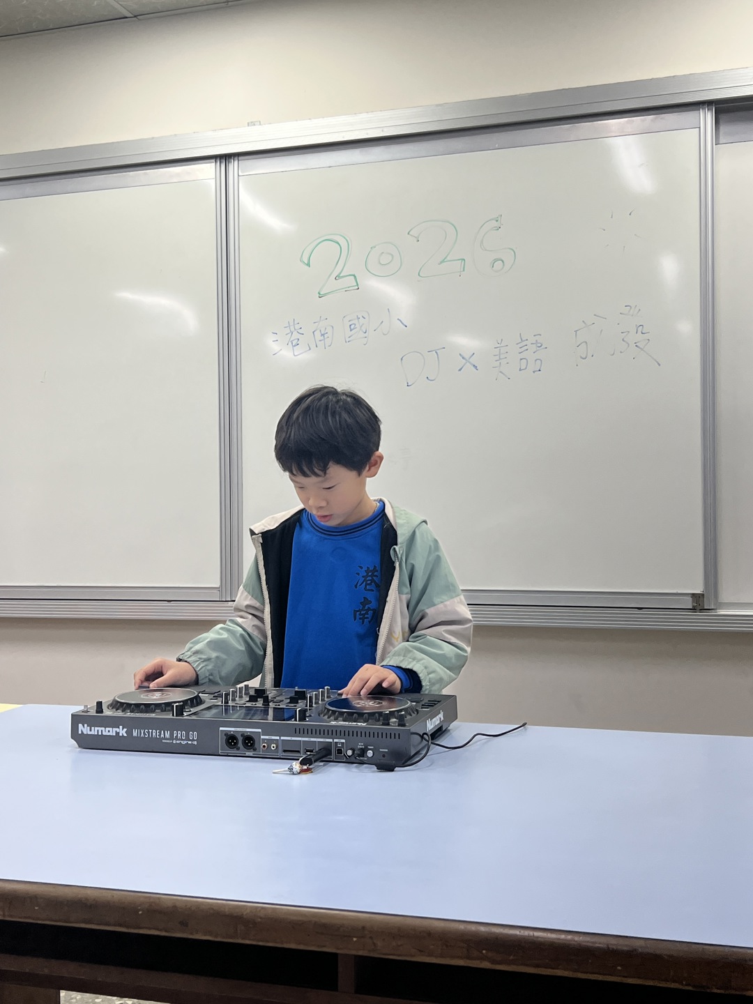 今日為本學期情境式數位音樂美語社的最後一堂課,也是一場充滿驚喜與掌聲的成果發表會。孩子們輪流上台,將課堂中學到的 DJ 錄製與播放歌曲技巧自信展現,活潑多元的曲風,搭配輕鬆自然的節拍律動,現場氣氛熱絡,其中幾位孩子的表現更已展現出流行音樂 DJ 的專業風格,令人驚豔!