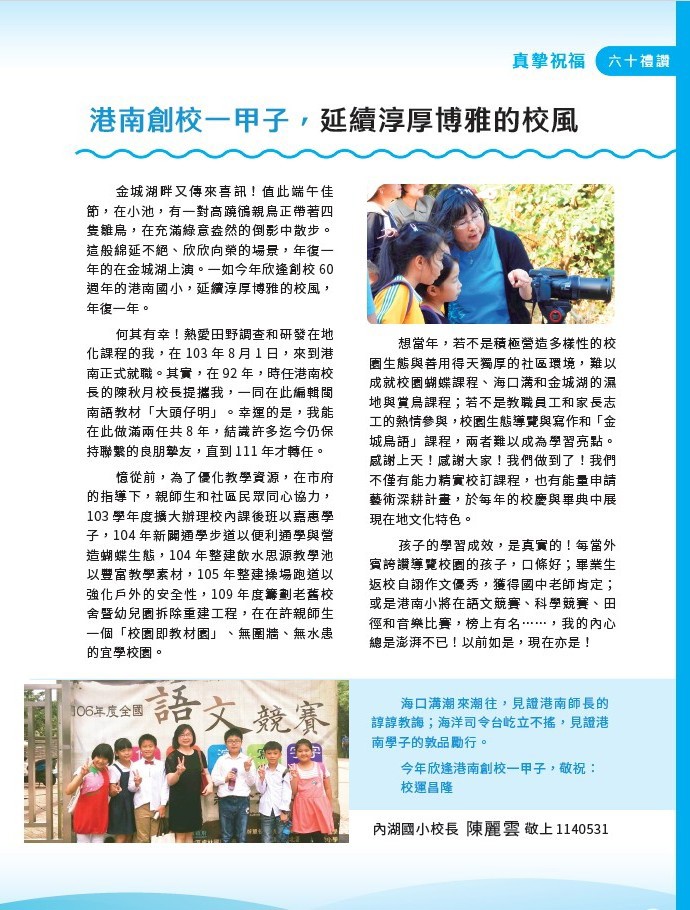 新照片新故事 ❤️【新竹市香山區港南國民小學 創校六十週年紀念特刊】